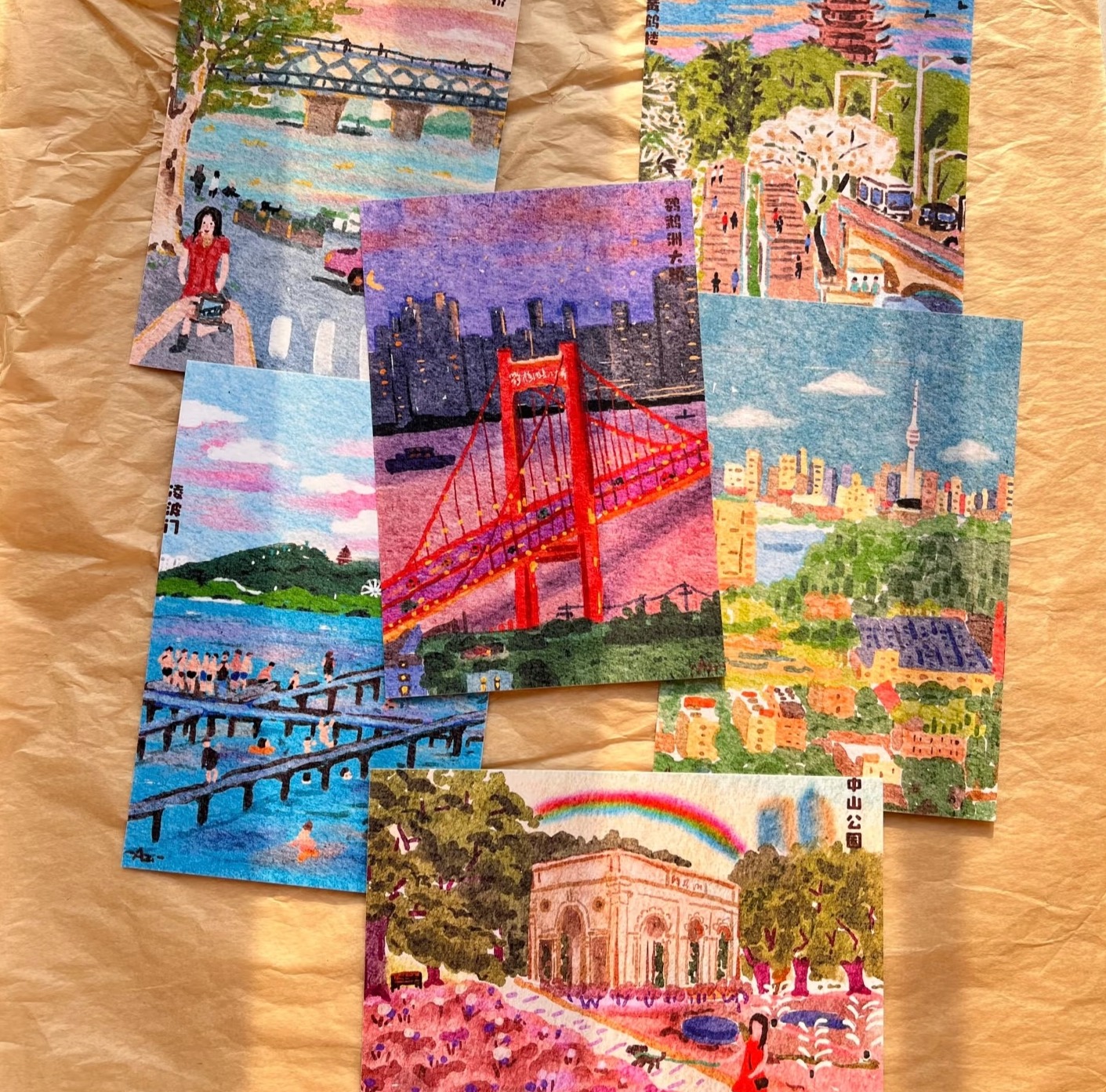 张紫薇高中便踏上美术之路,毕业后进入武汉一家设计院工作,业余也一直坚持画画。2022年6月,她偶然发现武汉成套的城市明信片比较少,于是萌生创作念头,绘制了12张城市明信片发布到网上。没想到,这些作品迅速引发网友关注,大家纷纷求购,还向她约稿画自己的家乡。