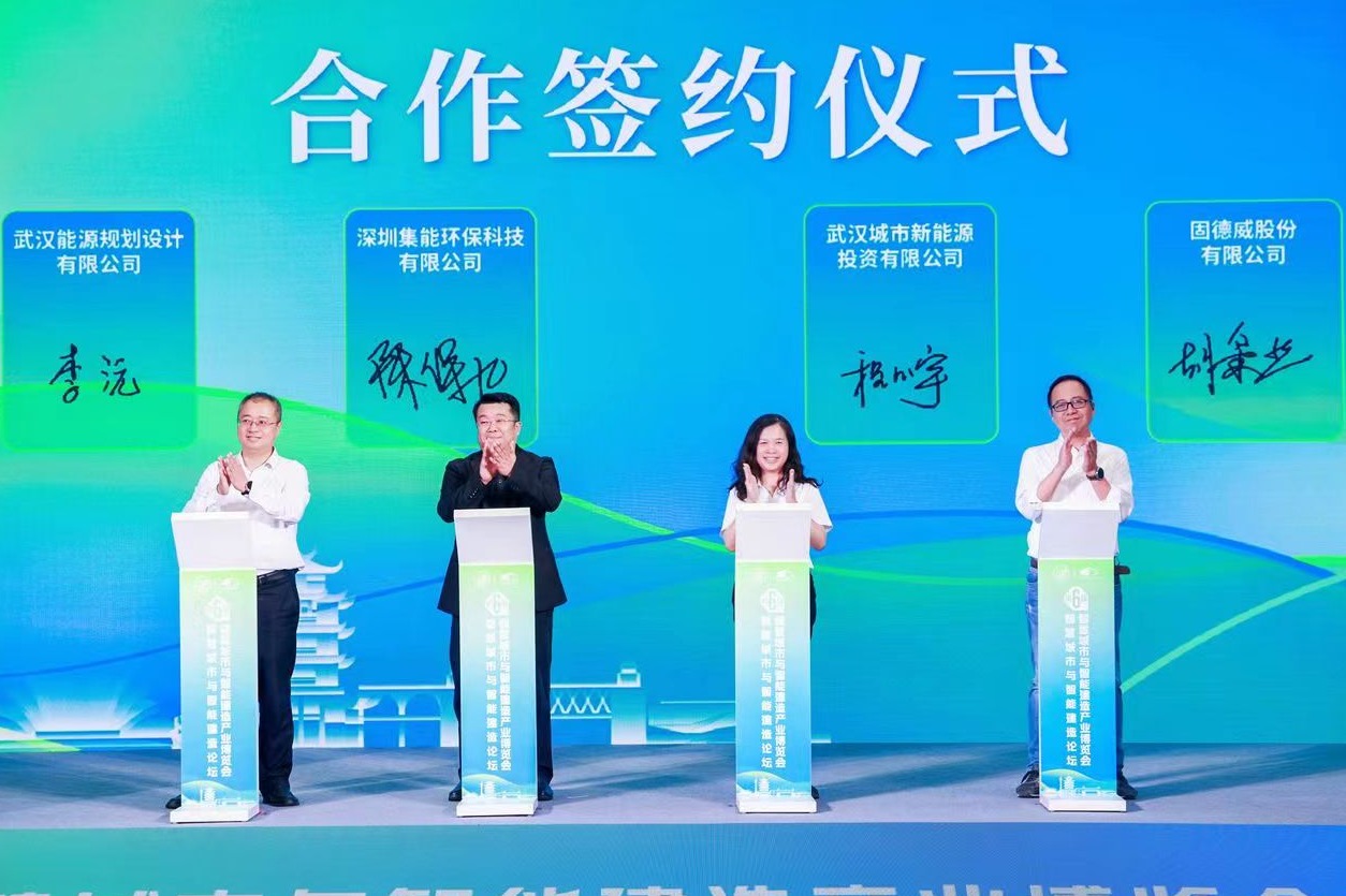 第二届城市智慧能源综合管理及应用技术论坛举办期间,武汉能源规划设计有限公司与深圳集能环保科技有限公司,武汉城市新能源投资有限公司与固德威股份有限公司完成智慧能源项目签约。