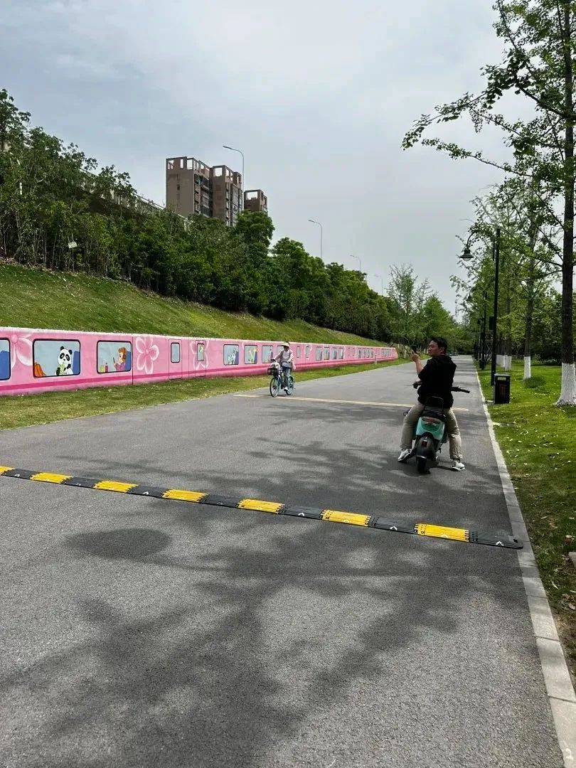 每当我看着骑行的人和壁画同框,“高铁”仿佛载着大家一路同行,这正是我们想表达的“城市与自然共生”的理念。现在,我们创作的新壁画更有意思,想把伯牙子期的故事用现代风格和3D效果展现出来,期待五一与大家见面,欢迎前来打卡体验。