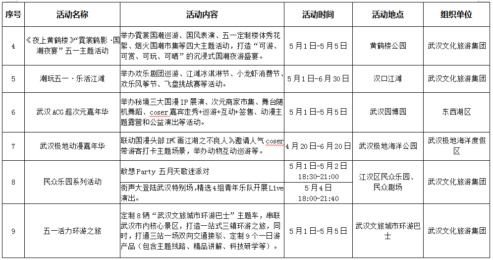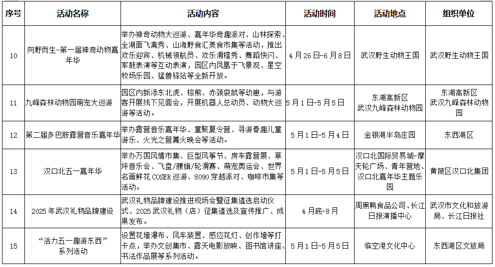五一假期作为“2025武汉长江旅游季”的开端,武汉准备了80+精彩活动迎接各地游客:游船派对、江畔音乐节、武汉话动物园等好吃、好玩、好逛的活动,欢迎全国游客来武汉吹江风、赏夜景、吃美食。