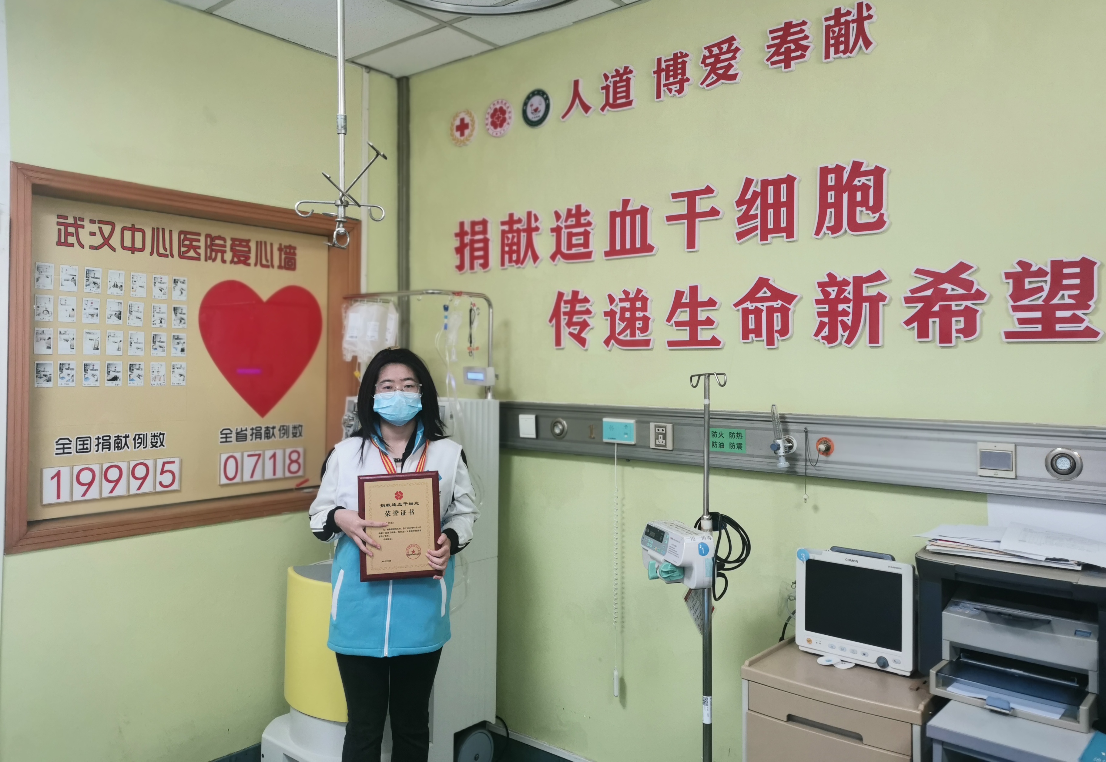 4月24日上午,在红十字会工作人员和武汉市中心医院医护人员的见证下,浅浅在自愿捐献造血干细胞同意书上郑重签下自己的名字。4月29日她顺利完成捐献,成为湖北省第718例、中华骨髓库第19995例造血干细胞捐献者。