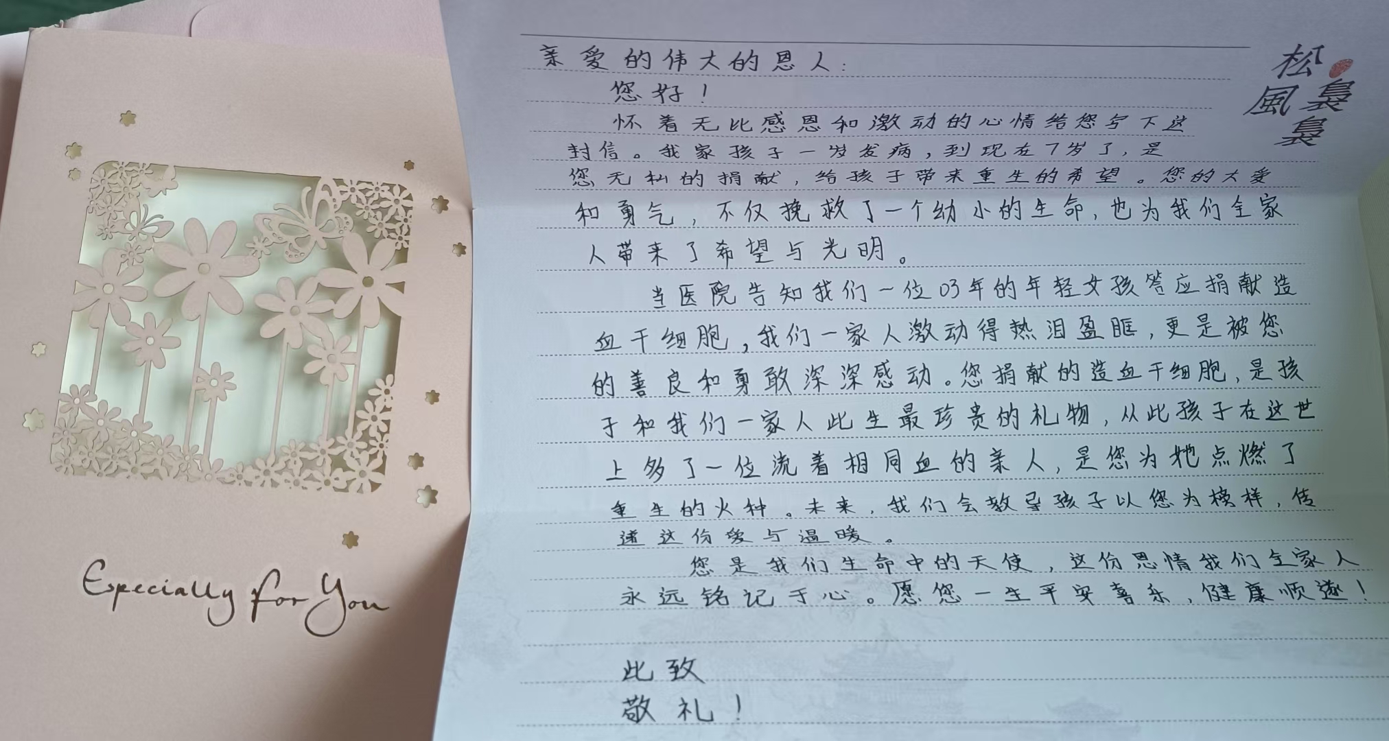 浅浅收到患者家属的感谢信。