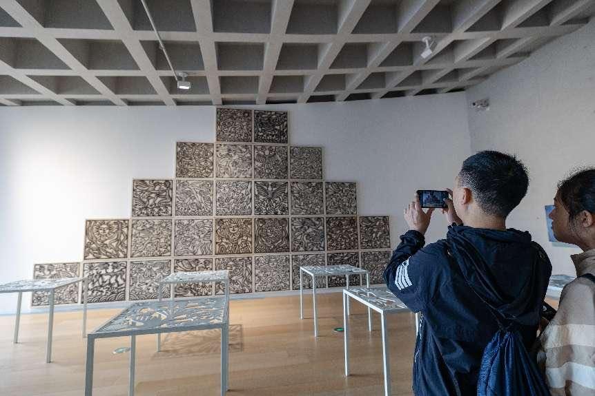 本土艺术家傅中望的作品《一个时代的美学》,用民国时期的木质椅柜腿拼接成多变的空间形态。艺术家以武汉作为连接古代与现代的历史节点,通过家具的多样形制,展现民国美学的多元性,引发观众对城市文化变迁的共鸣。