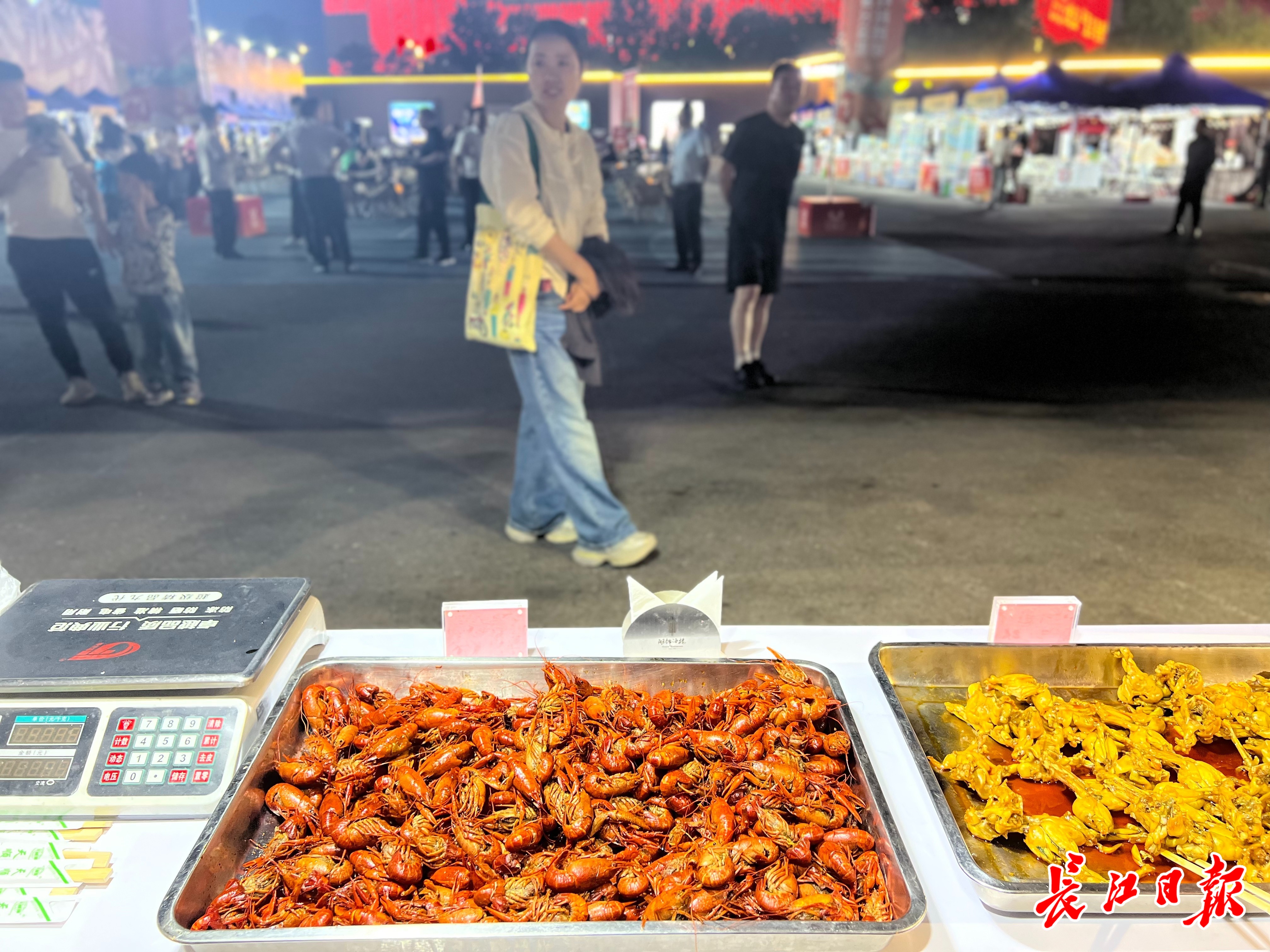 活动现场,多家本地小龙虾品牌及特色餐厅入驻,吸引了大量市民驻足,油焖、蒜蓉、清蒸、十三香等多种经典口味小龙虾随意挑选,还有热干面、鸭脖、藕汤等不少武汉特色小吃摆摊。