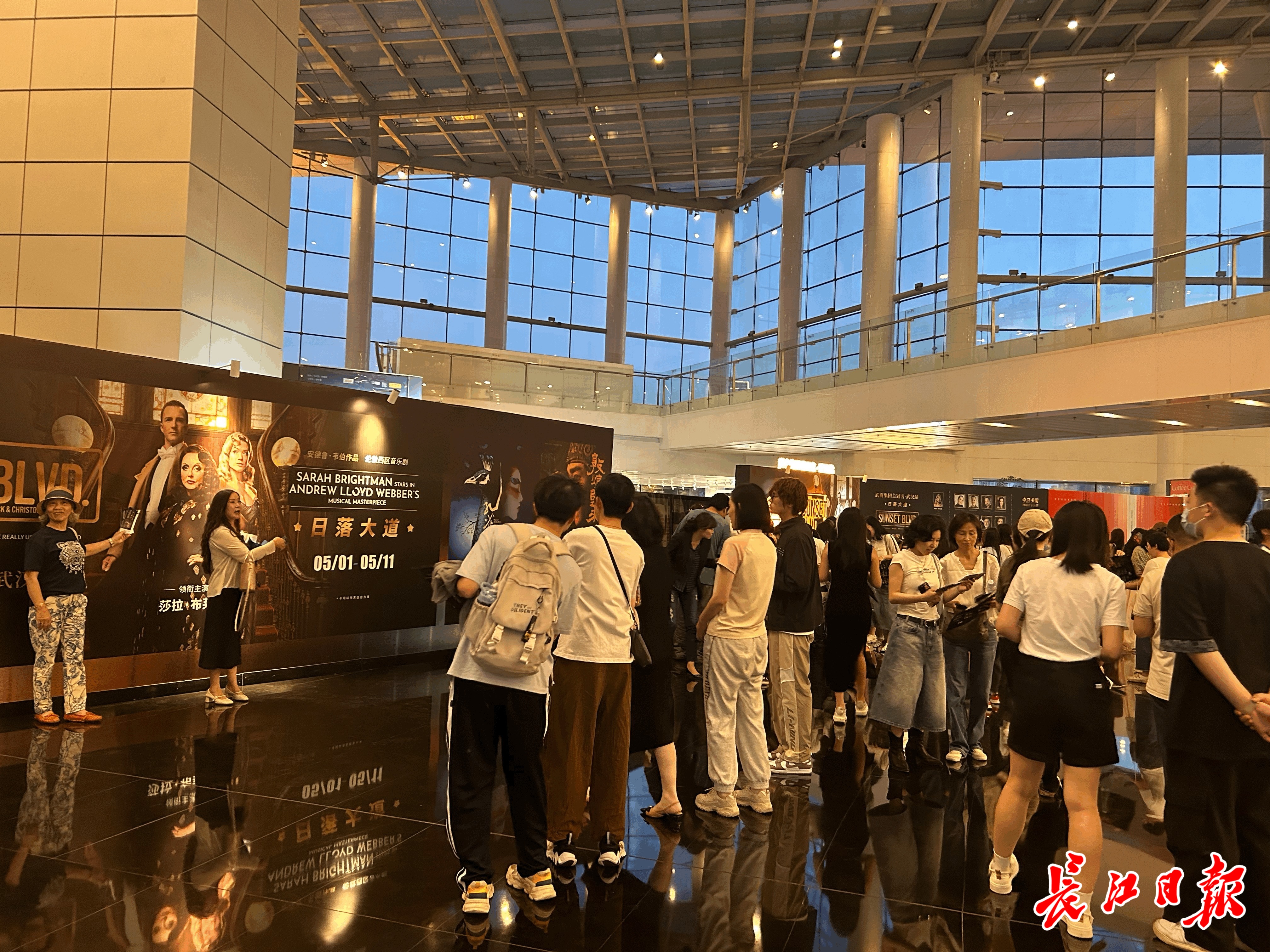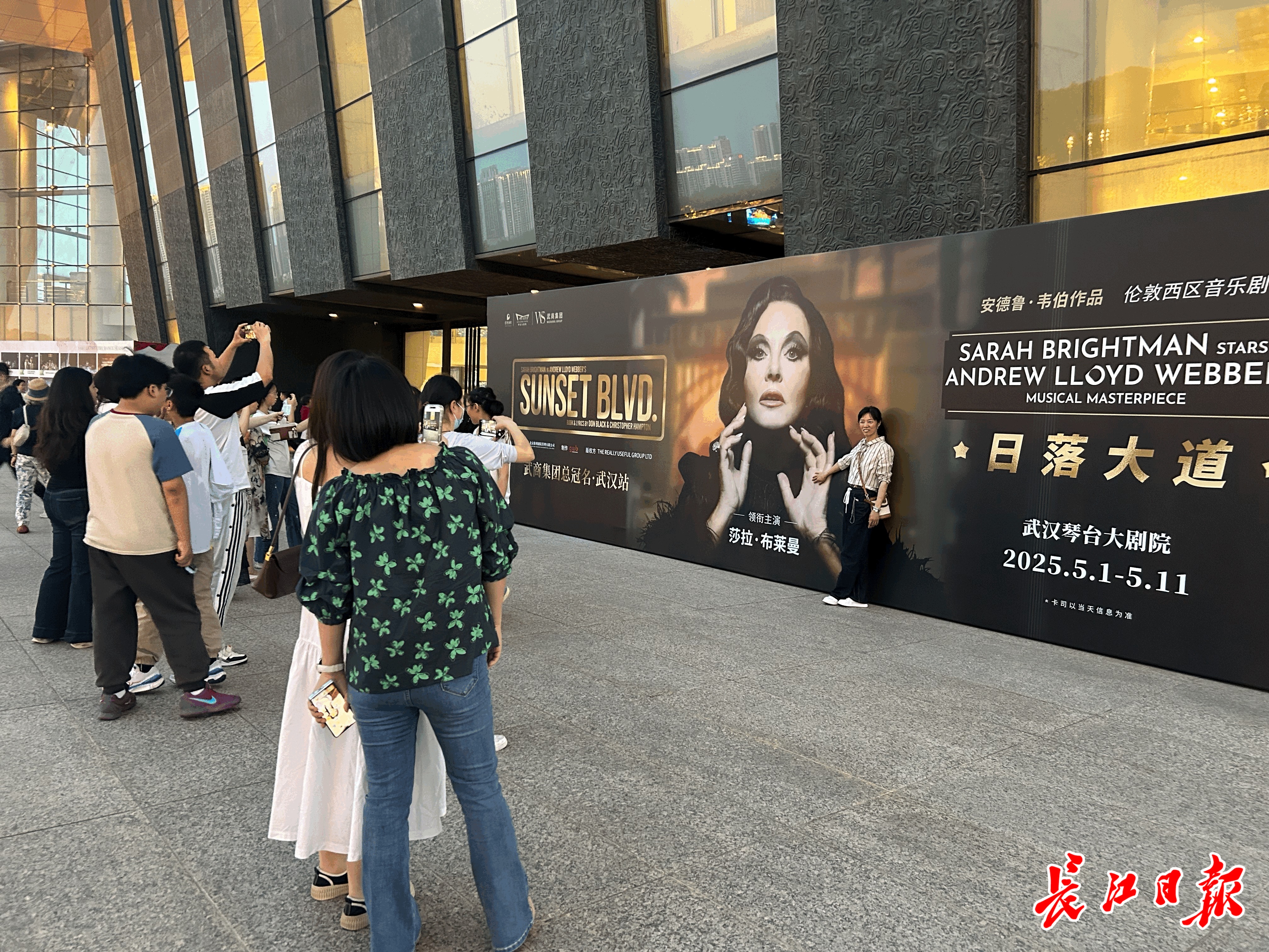 长江日报大武汉客户端5月2日讯(记者樊友寒)“终于等到《日落大道》来武汉了!”5月1日晚六点半,离演出开始还有1小时,大批观众已提前到达武汉琴台大剧院。在大幅演出海报下,观众排队打卡拍照,与主演莎拉・布莱曼合影。今晚,约1700人赶赴现场,欣赏这部经典音乐剧的武汉首秀。