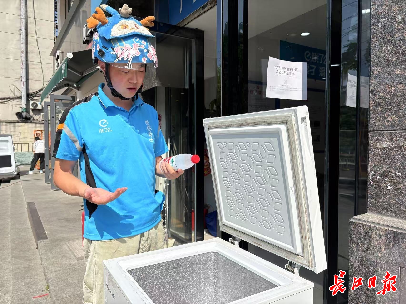 长江日报记者注意到,驿站门前,一台冰柜的外侧贴着醒目的标识——“爱心冰饮,免费自取”。