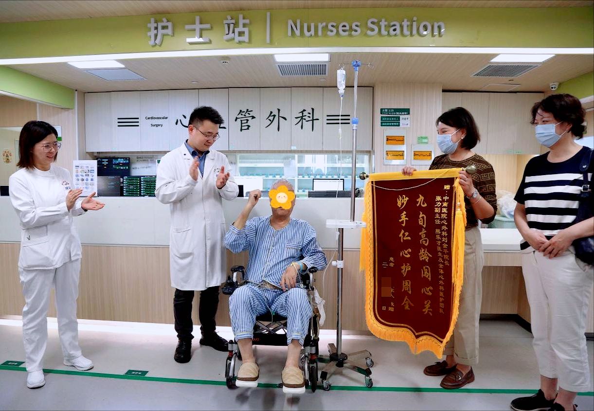 此前,老人因突发心源性休克、呼吸衰竭,情况十分危急。在中南医院多学科团队的联合救治下,闯过术前抢救、急诊心脏手术、术后康复三大难关。