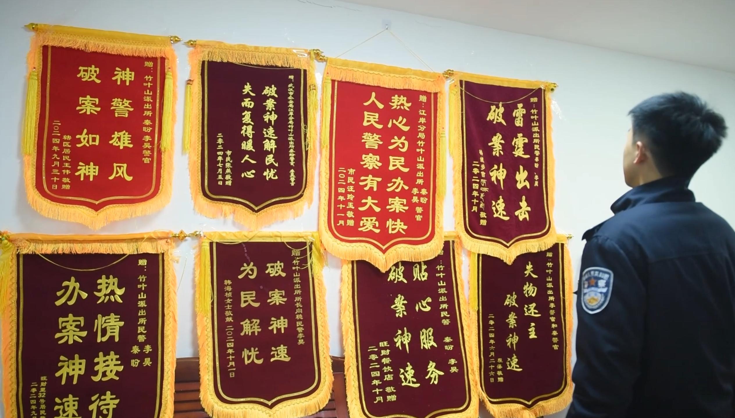 据统计,入职一年多来,李昊累计处理报警及各类案件200余起:从调解鸡毛蒜皮的纠纷,到帮老人寻找走失宠物;从普通治安案件到意外抓获网逃人员。群众赠送的10面锦旗,如今已挂满办公室整面墙,见证着这位年轻警察的成长足迹。