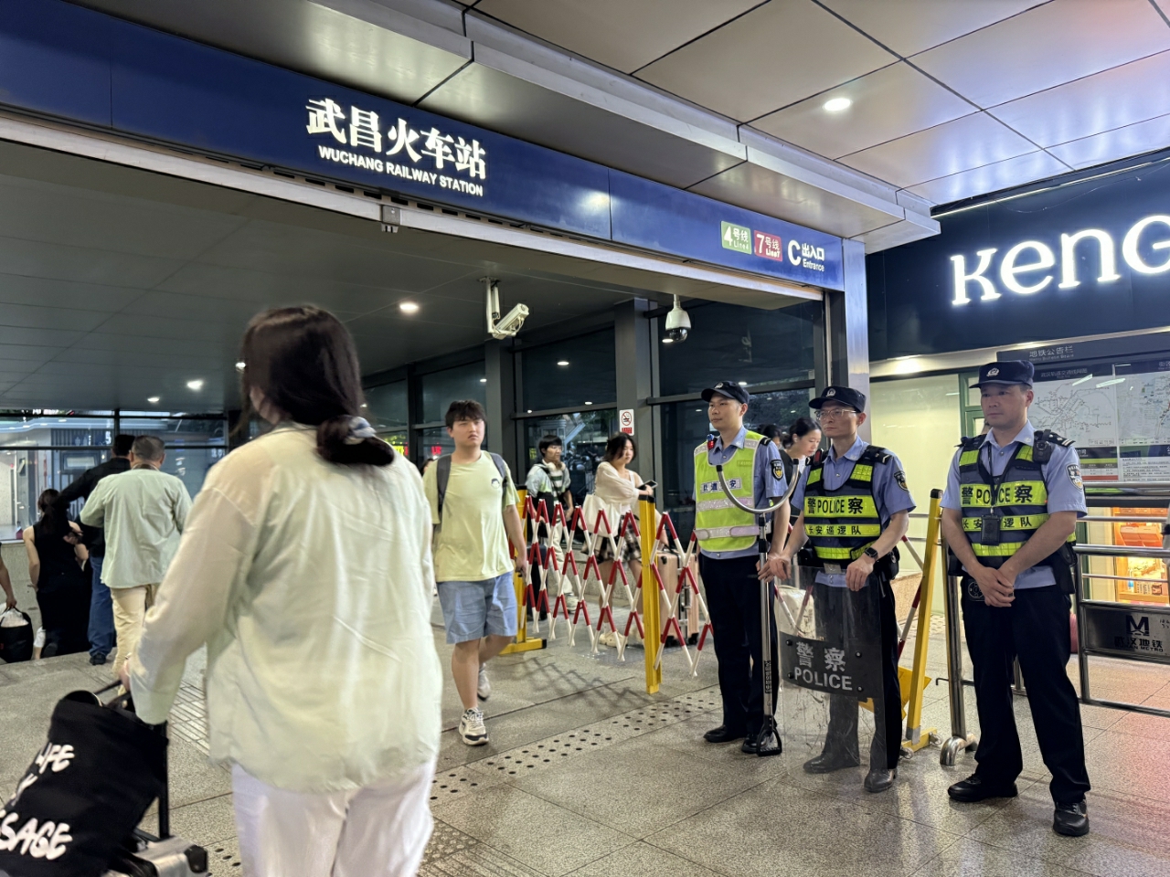 节日期间,武汉轨道公安对重点车站叠加布警,全方位巡逻防控,累计安全护送2400余万乘客出行,提供各类便民服务700余次。