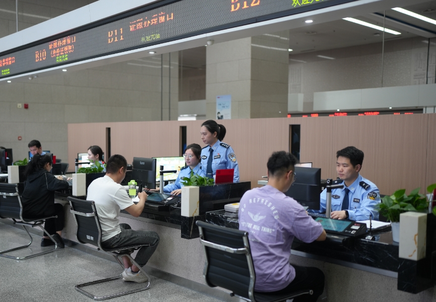 政务窗口民警服务办证群众。通讯员武龚萱摄