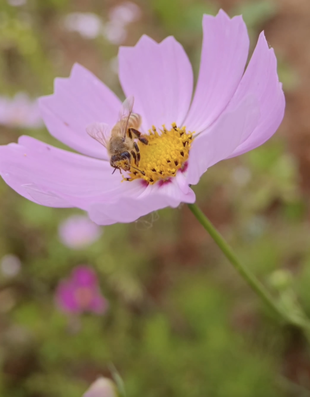 夏初万物盛开季,群芳竞相争新颜。蜜蜂逐蕊花丛穿,蜂翅闻香扑花海。生如夏花之绚烂,勤勤恳恳付芳华。蜜甜蜂满收获日,苦尽甘来报人间。