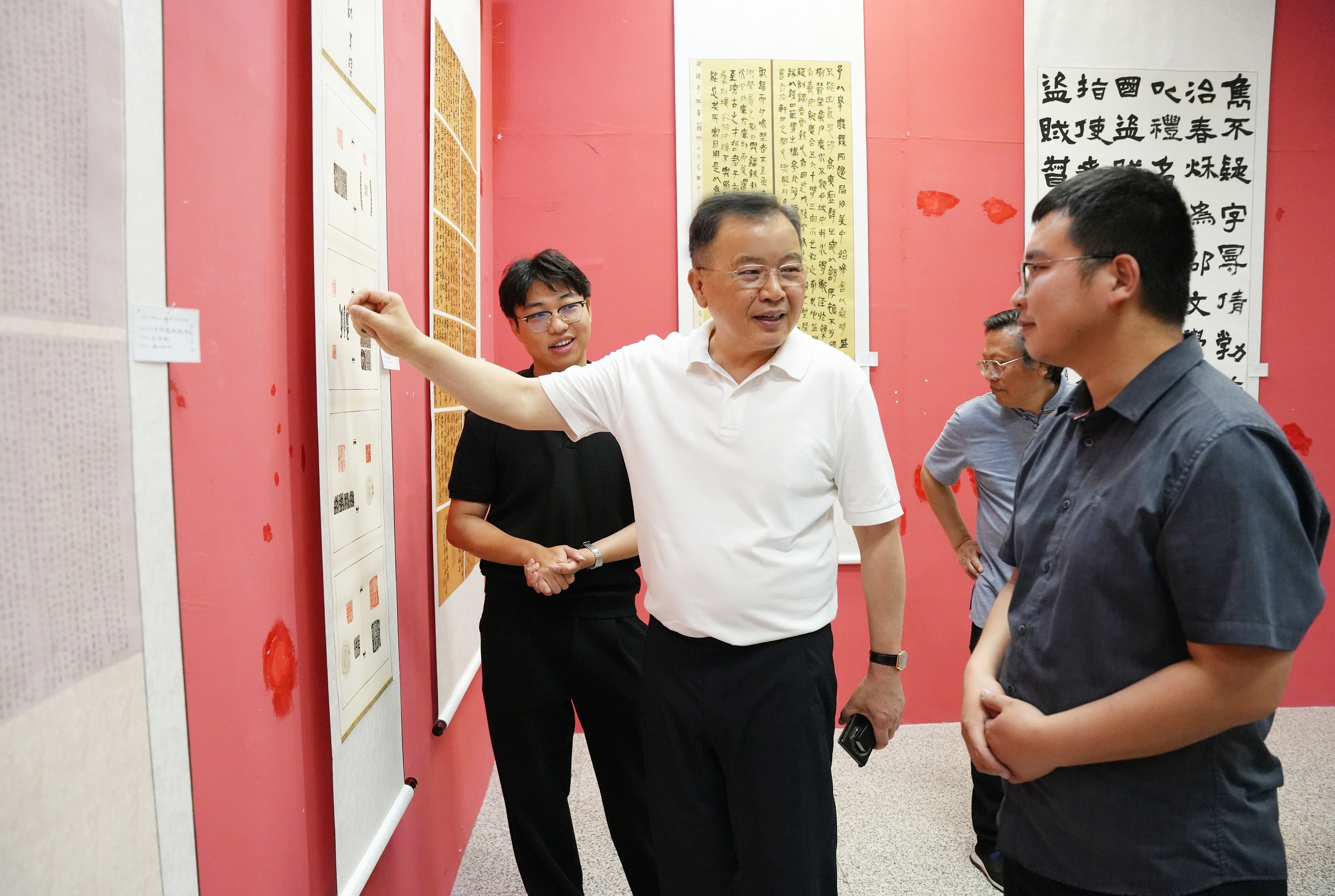 校长李勇教授宣布开展后,现场嘉宾与师生共同参观展厅。88幅作品在笔墨流转间,既有对《兰亭序》《张迁碑》的临习传承,也有以现代诗赋为内容的原创作品,传统笔墨在年轻学子笔下焕发出时代生机。正如展厅内“源头活水”的主题所喻,武昌工学院书法专业正以扎实的办学根基与创新活力,为书法艺术的传承发展注入源源不断的青春力量。