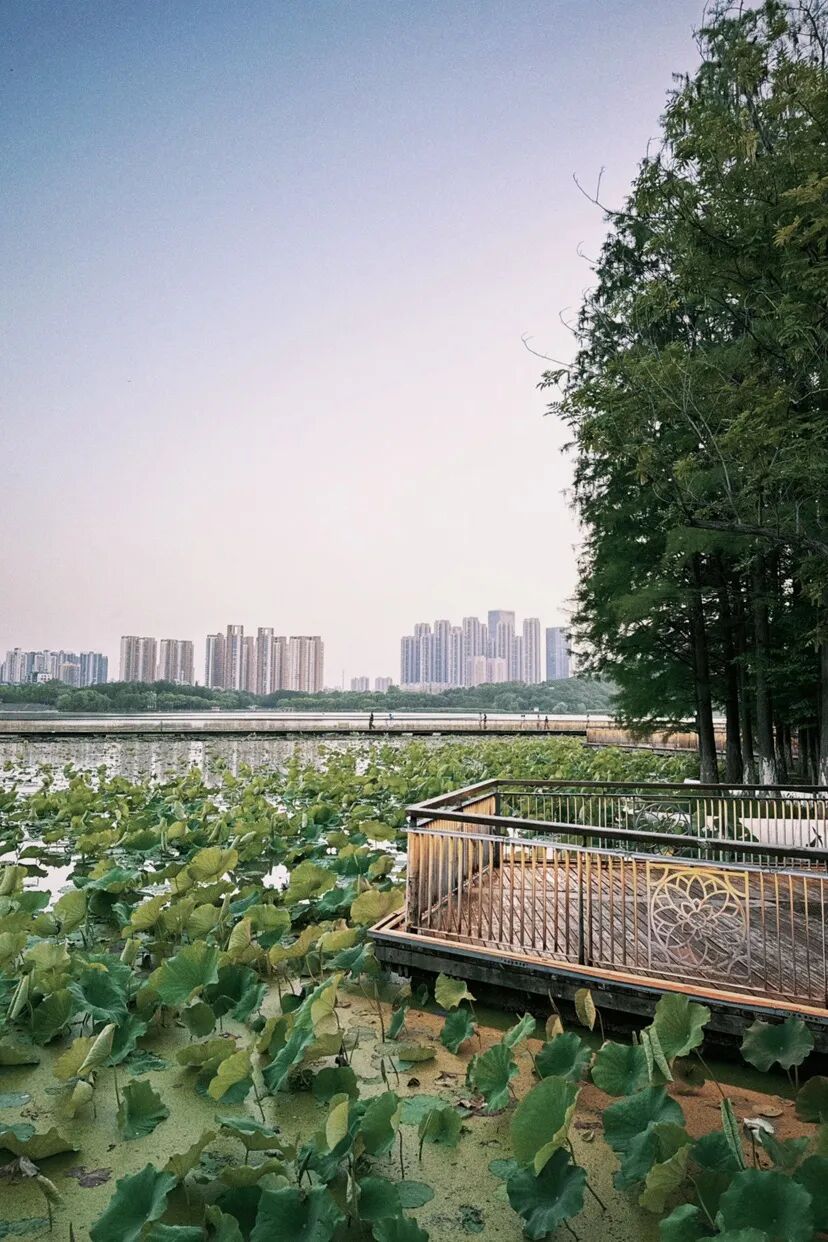 在琴台之畔、月湖之滨,莲叶早已立起,夏日的微风,恰似一双温柔的手,在此刻轻轻拂过,携来徐徐的凉风与舒爽。此刻,夜色正在酝酿,等待着与你见面。