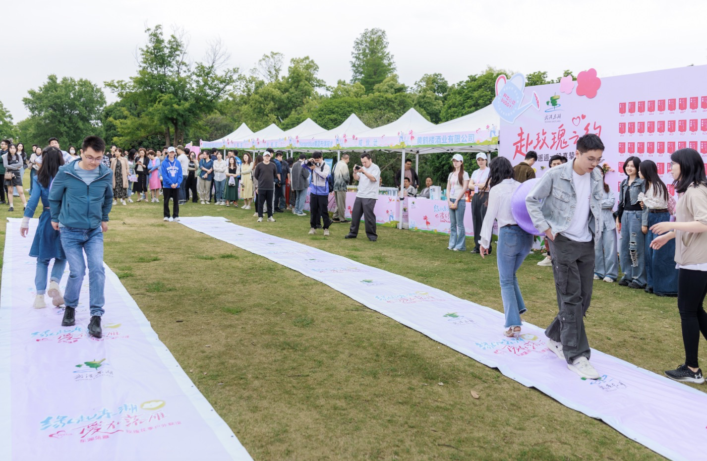 随着乐队深情演绎《玫瑰玫瑰我爱你》,活动正式进入高潮。飞花令、花缘聚、桃花朵朵开、背对背传球、两人三足……一个个精心设计的玫瑰主题互动游戏轮番上演,让青年在欢笑中拉近距离,在合作中碰撞火花。
