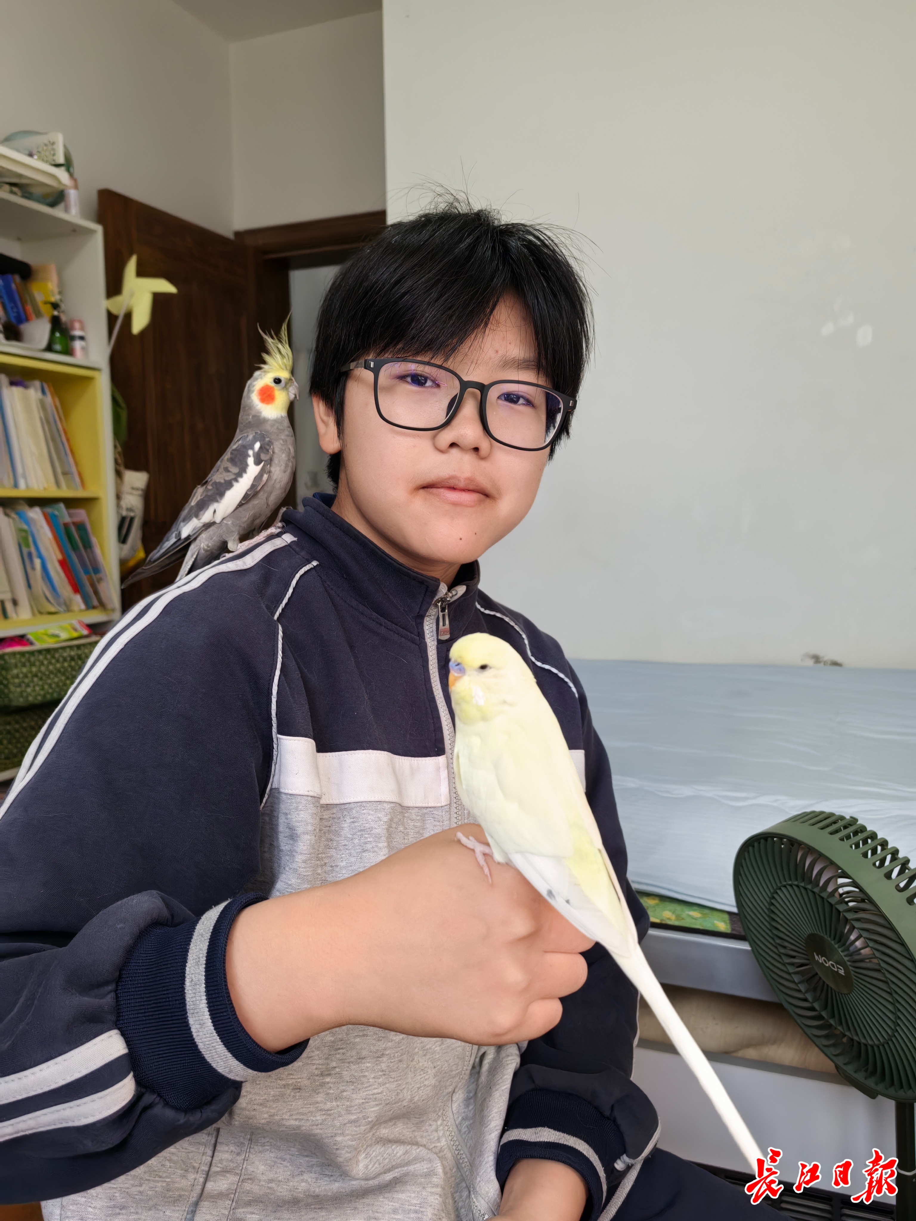 夏羚窈从花鸟市场买回饲养的宠物鹦鹉。记者金文兵 摄