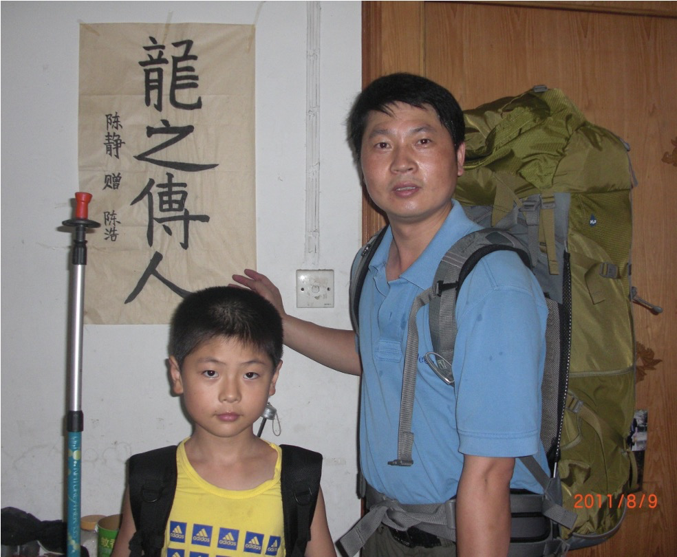 2011年,陈刚去攀登珠峰,临走时和10岁的儿子在家里拍了一张合影。孩子稚嫩的眼神里,满满是对爸爸的崇拜和对珠峰的向往。陈刚看出了孩子的兴趣,回家后,只要一有空,他就带儿子去户外锻炼,学习攀岩。