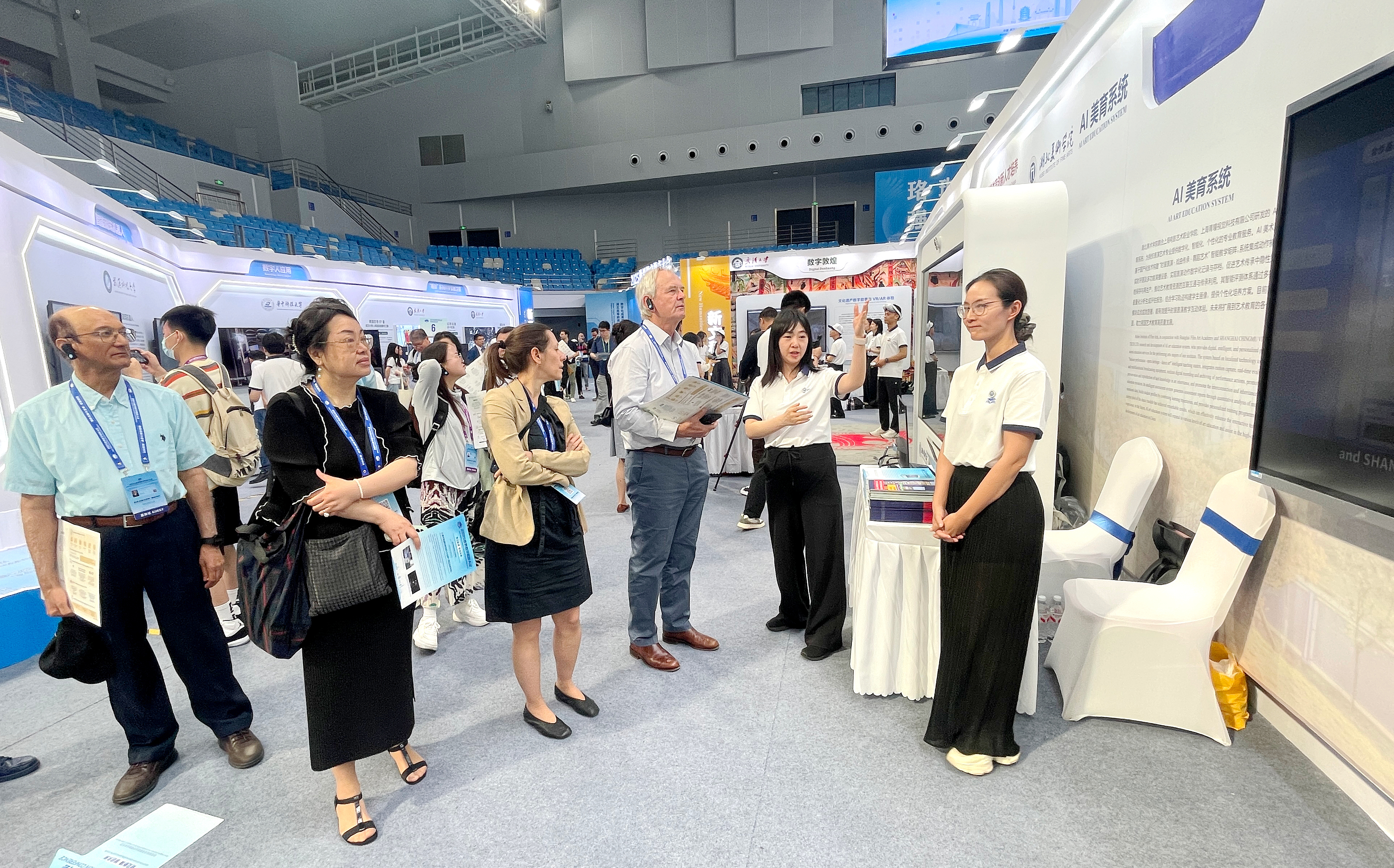 5月14日至16日,“育见新境 智启未来——湖北高等教育数字化成果展”在武汉大学举行,作为2025世界数字教育大会的重要组成部分,吸引众多目光。湖北美术学院联合上海电影艺术学院、上海青瞳视觉科技有限公司研发的“AI美育系统”在展会上精彩亮相,展现艺术教育数字化创新成果。