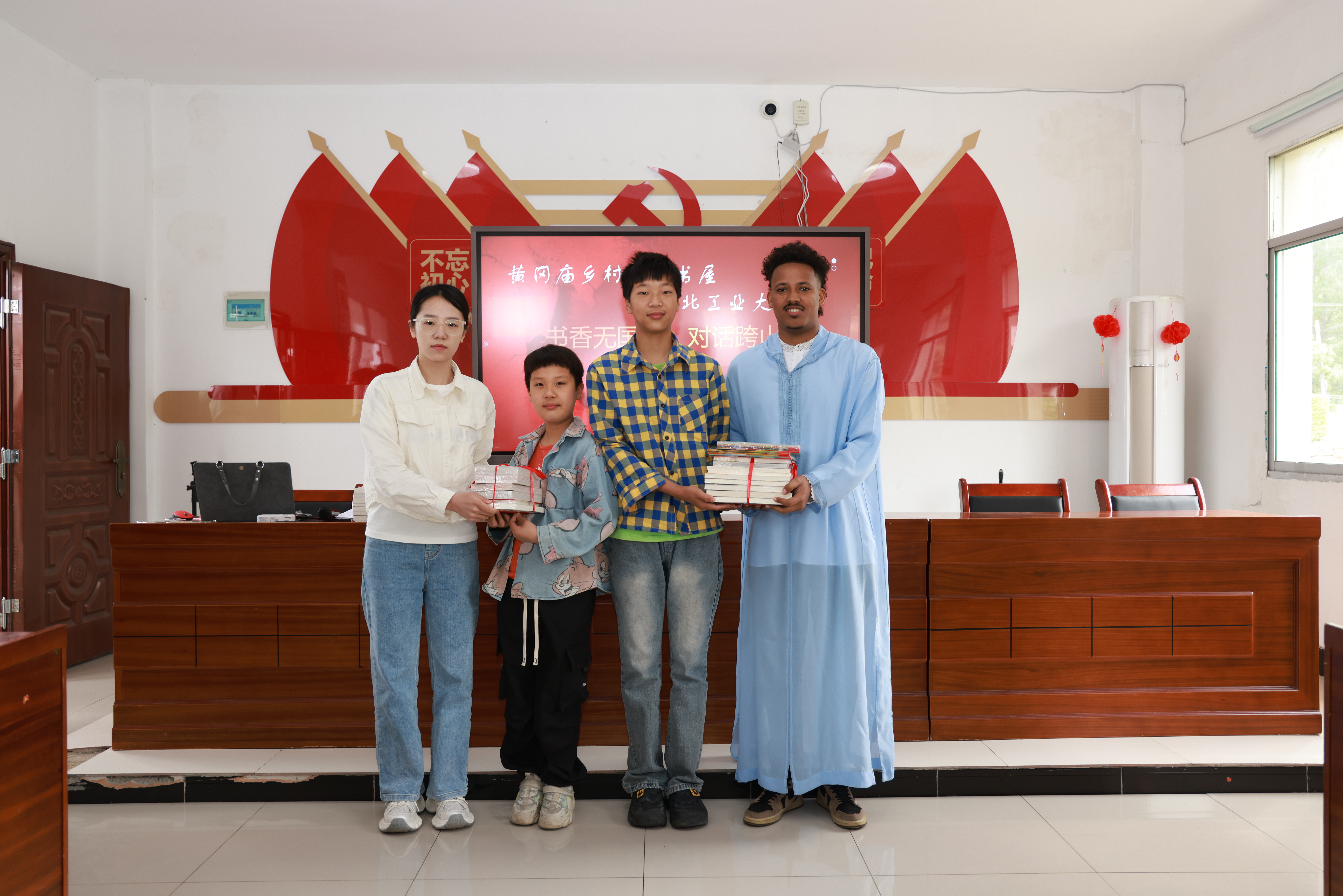在黄冈庙村乡村“希望书屋”,湖北工业大学国际学生志愿服务团和大学生记者团向书屋捐赠中外图书。在随后的周末课堂上,来自泰国的静妍、来自埃塞俄比亚的伯尼等志愿者与孩子们分享本国的语言、服饰、美食、节日等,通过沉浸式文化体验与互动教学相结合的方式,让孩子们感受多元文化魅力。