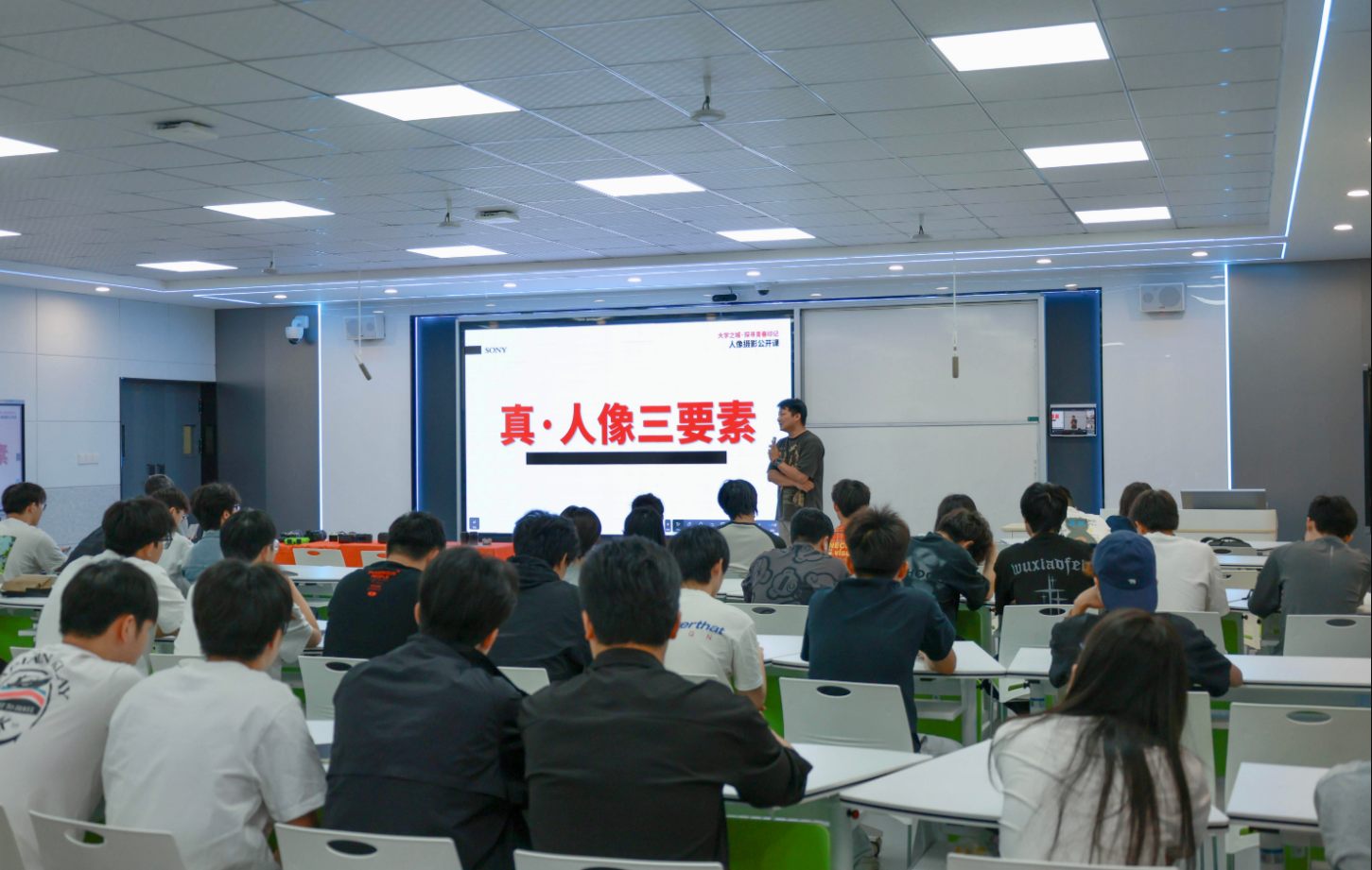 随后,索尼官方导师曾松老师结合自身丰富的摄影经验,以幽默风趣的方式,为学生们分享了人像摄影的秘诀,包括人像摄影的三大要素、摄影设备的挑选和使用技巧等,同学们听得津津有味,现场气氛热烈。