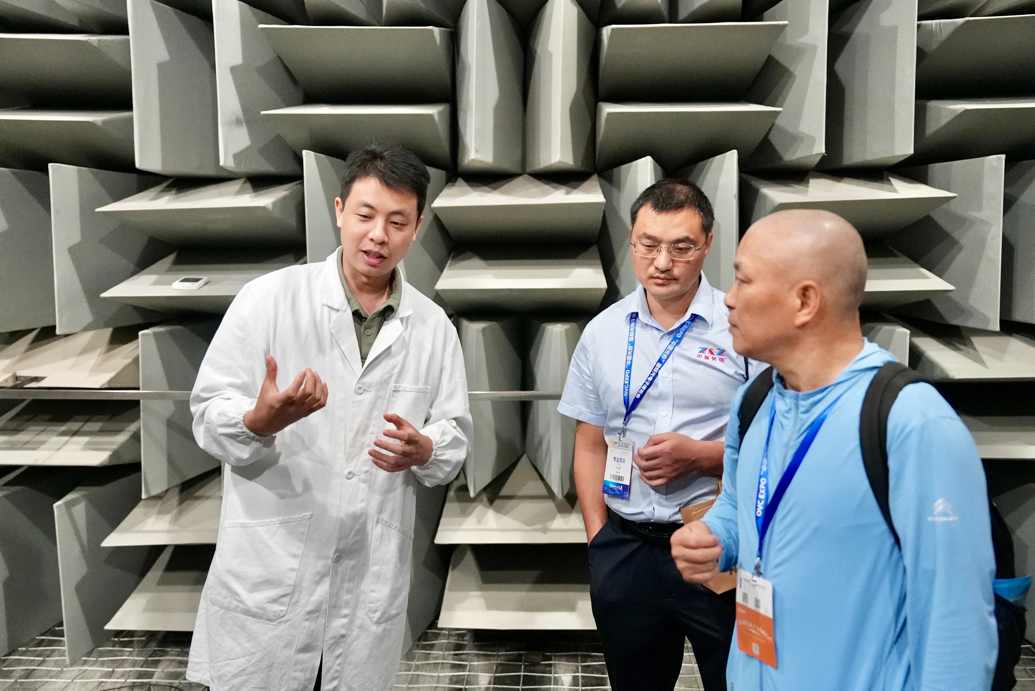 十米法电磁兼容检测实验室,魏鼎博士正在对某光模块产品进行检测。