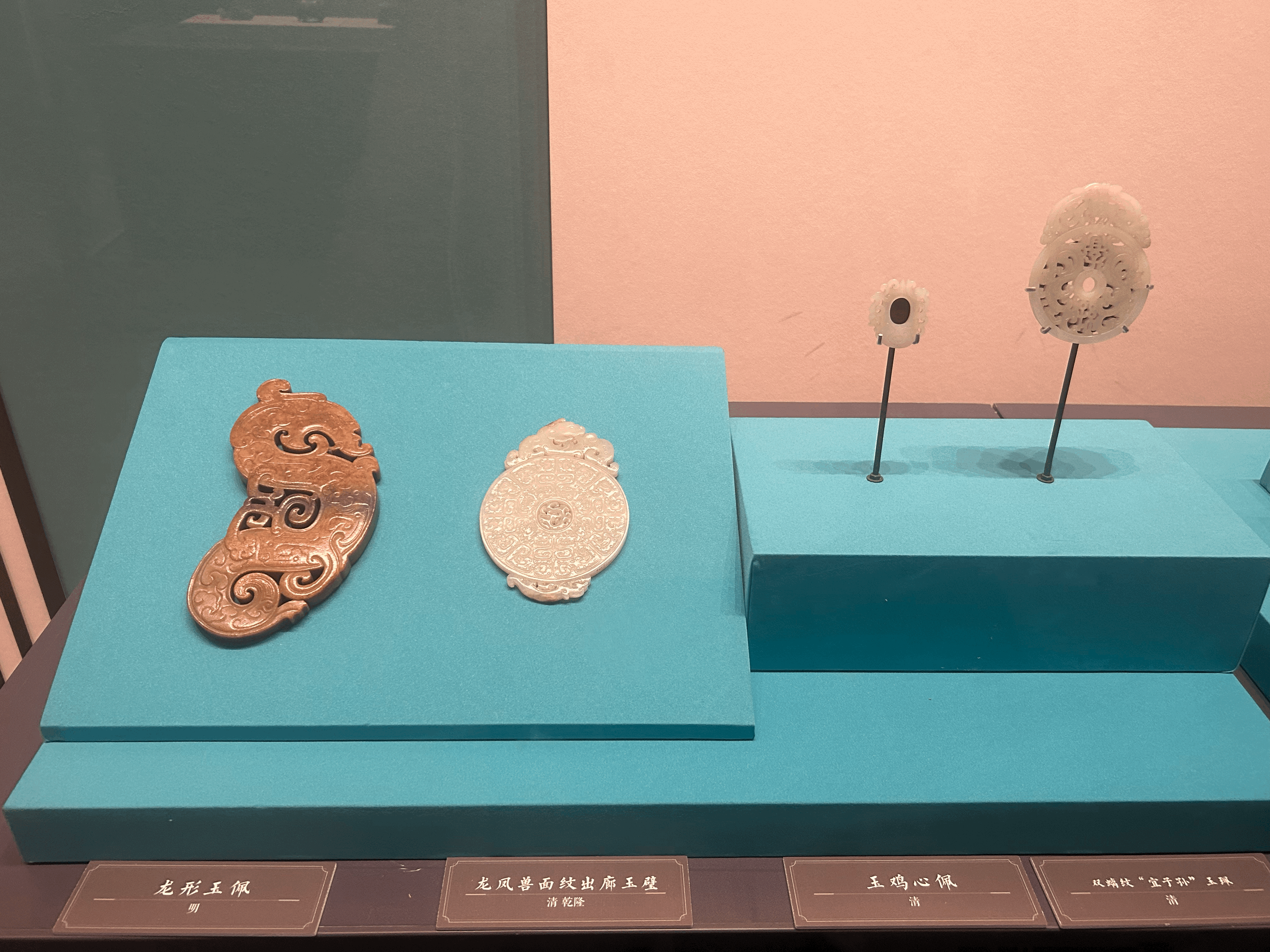 展览中可见清代九螭纹玉璧、清代螭纹谷纹玉如意、明代云纹鹰熊纹玉合卺杯、明代松鹤人物纹双耳玉杯等。尤其值得一提的是嘉庆二十五年仁宗睿皇帝玉谥册,为清道光帝为父皇嘉庆帝所制。玉册一套十片,采用整玉雕刻,刻有帝王功德的完整谥文,是皇家谥礼的重要实物,兼具制度史料价值与工艺美学。