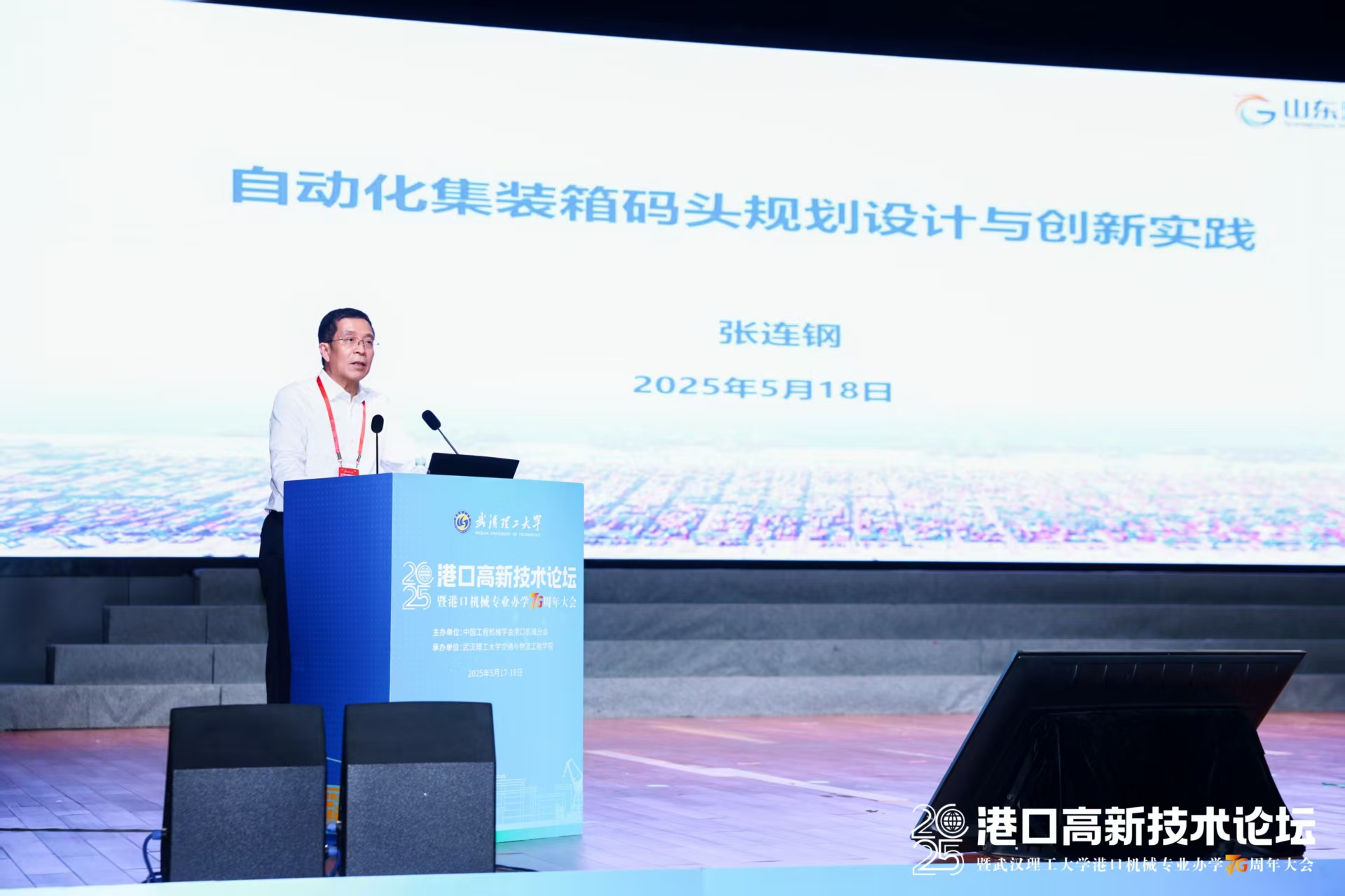 2025年港口高新技术论坛上,山东港高级专家、首席科学家张连钢,宁波舟山港集团鼠浪湖码头有限公司董事长任国庆,厦门港务总经理陈朝辉,武汉理工大学交通物流学院教授袁建明分别作主旨报告。