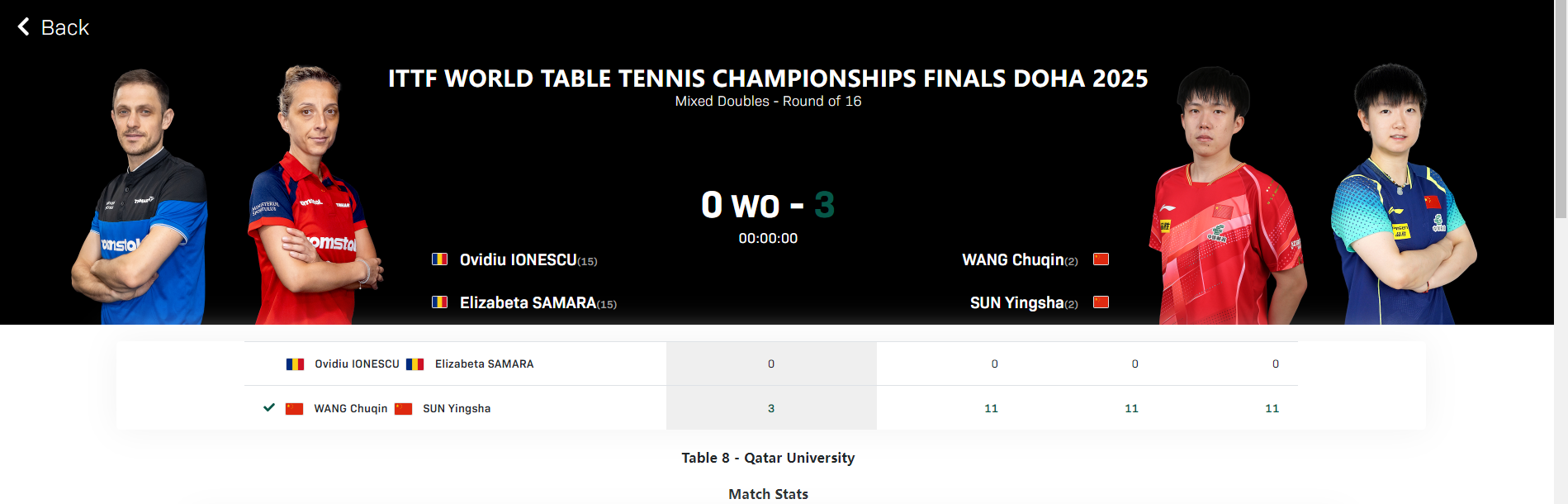 孙颖莎/王楚钦直接晋级混双八强