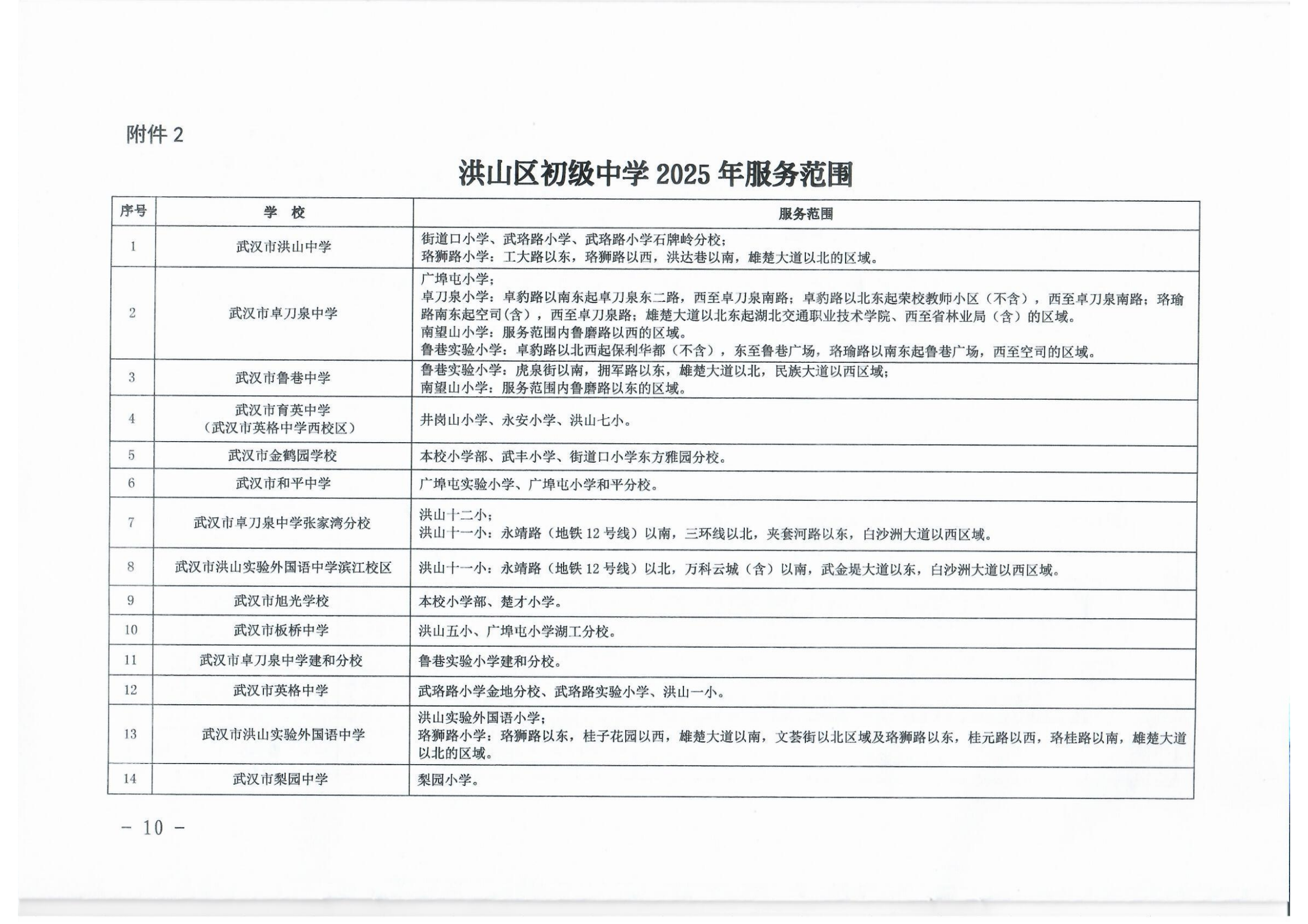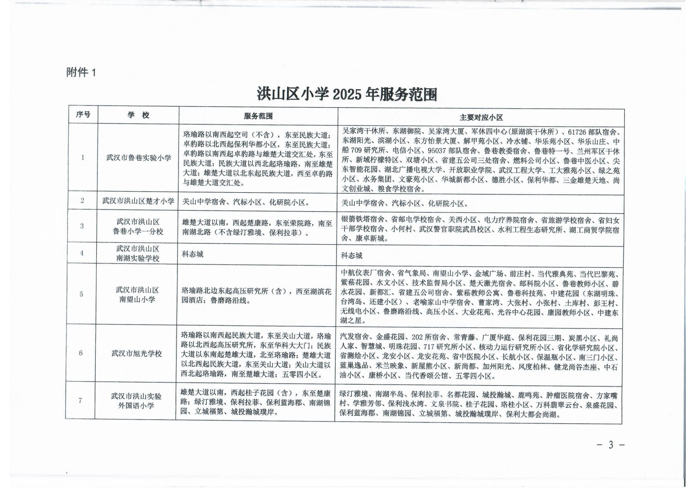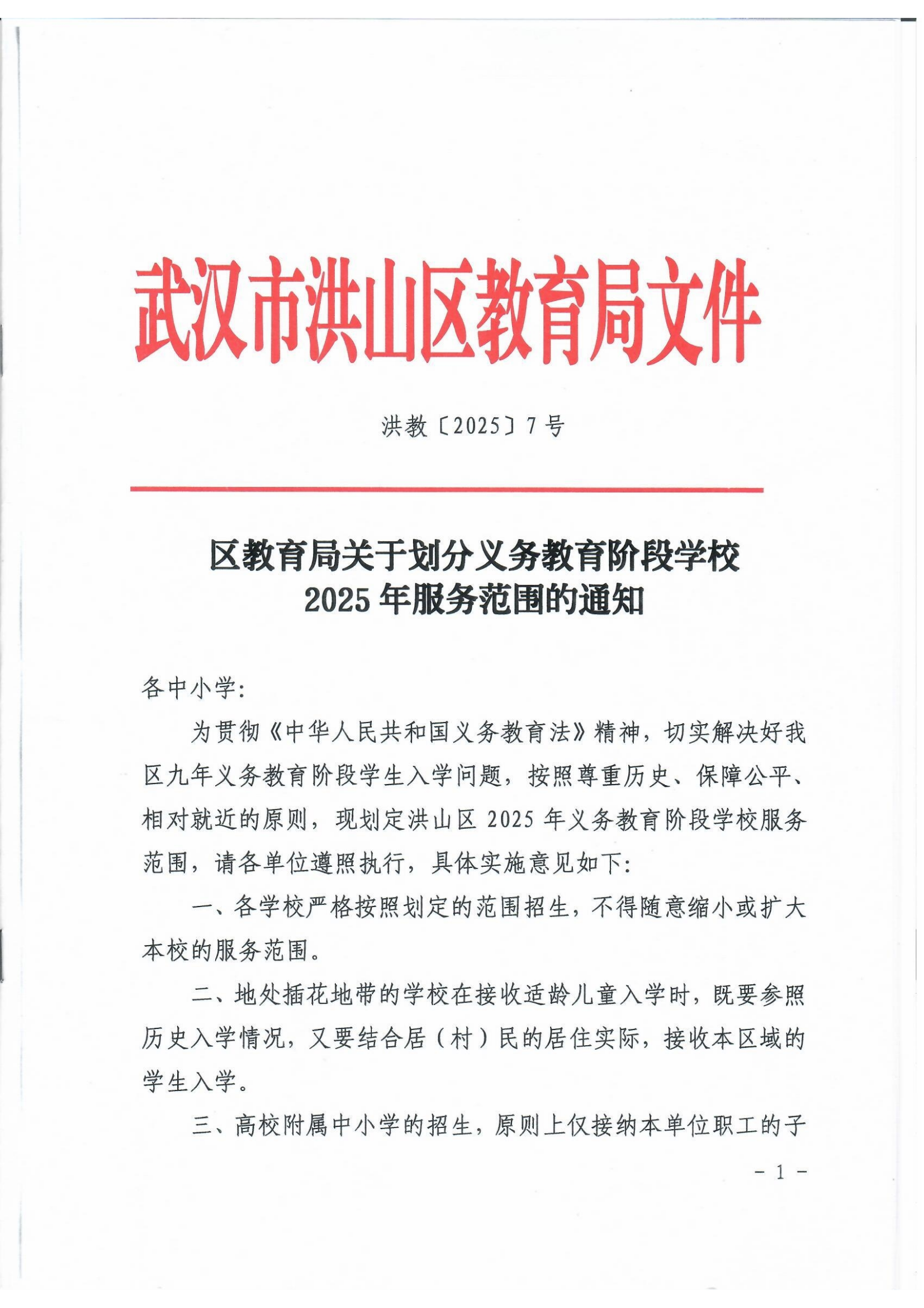 洪山区教育局关于划分义务教育阶段学校2025年服务范围的通知