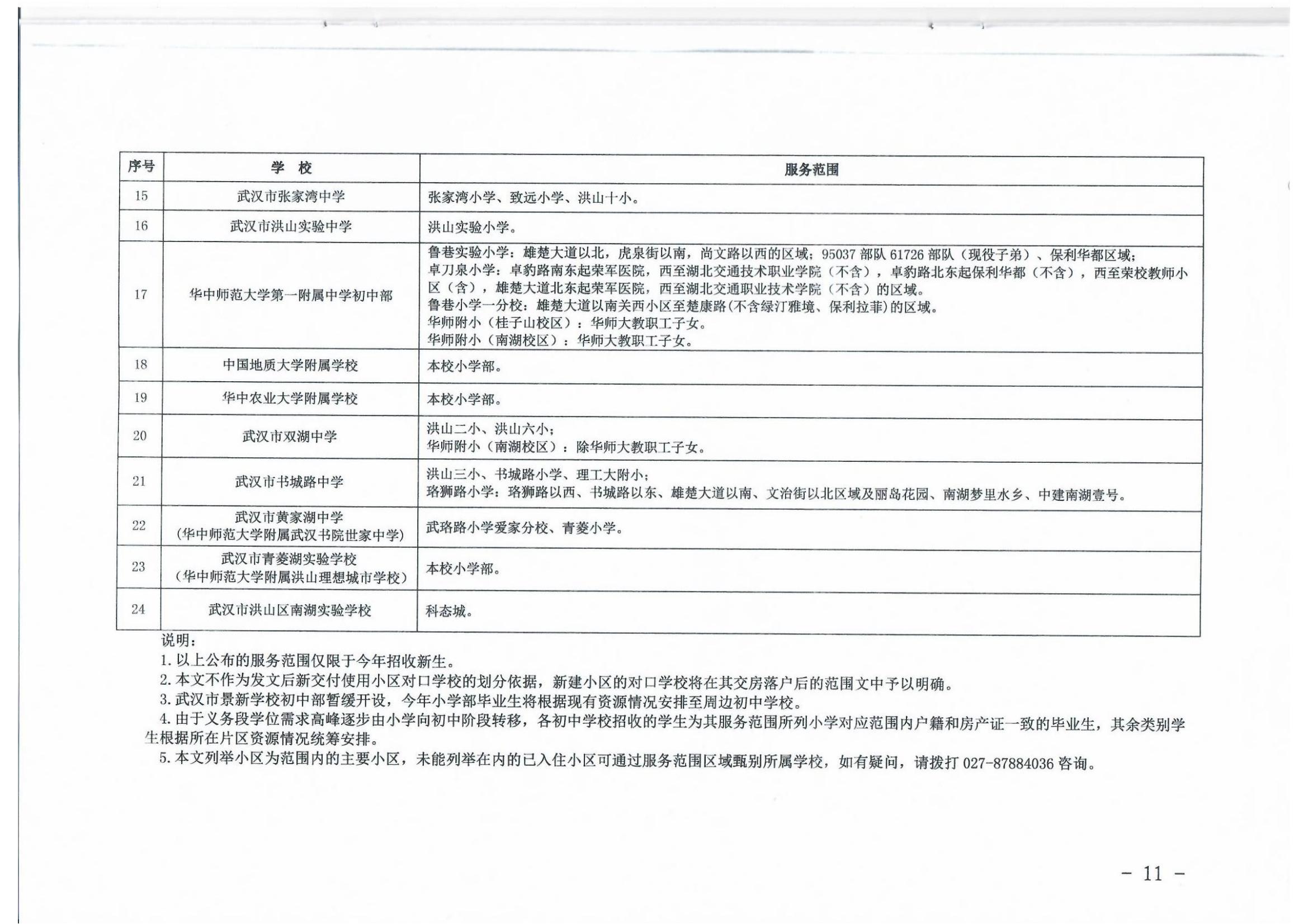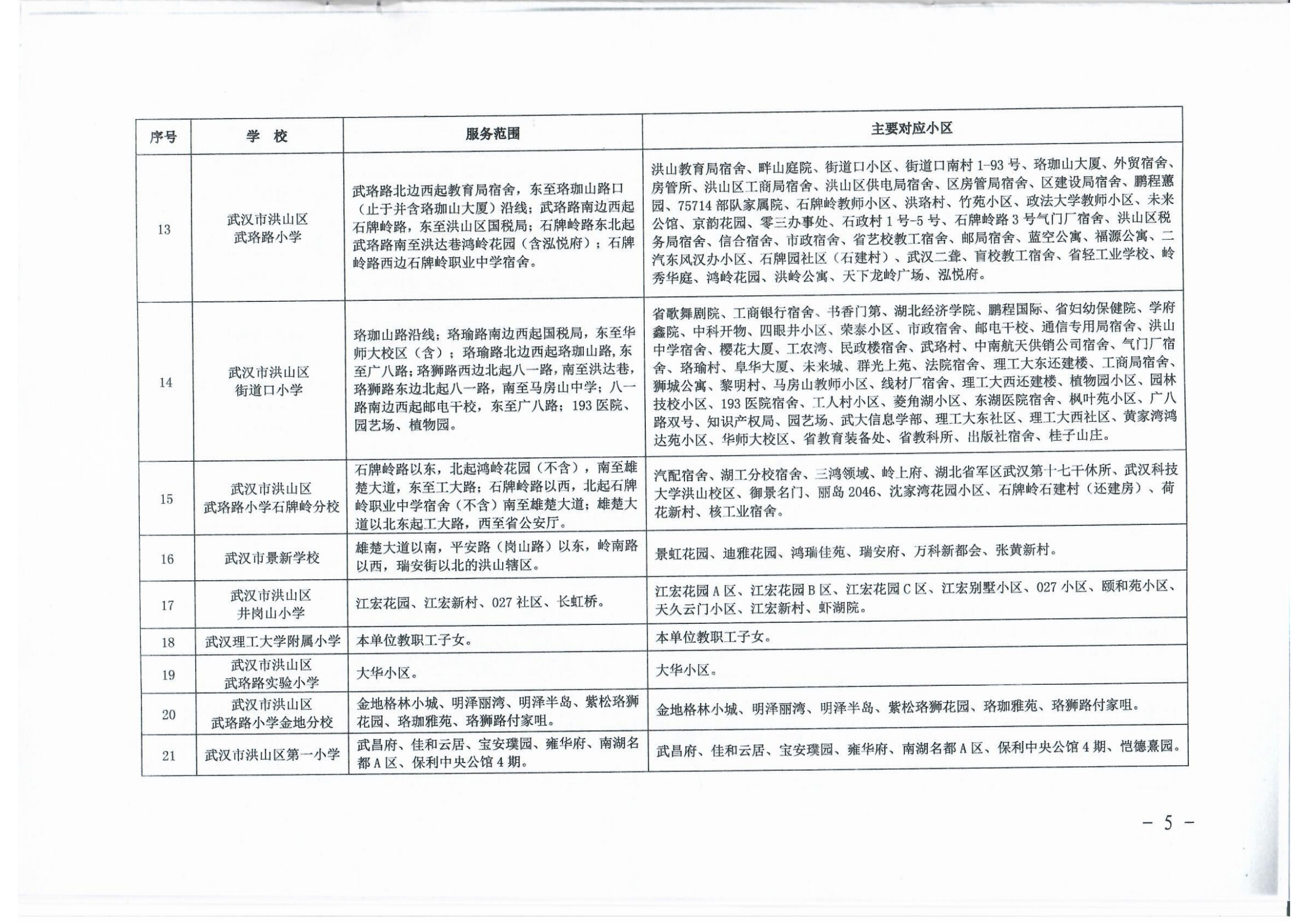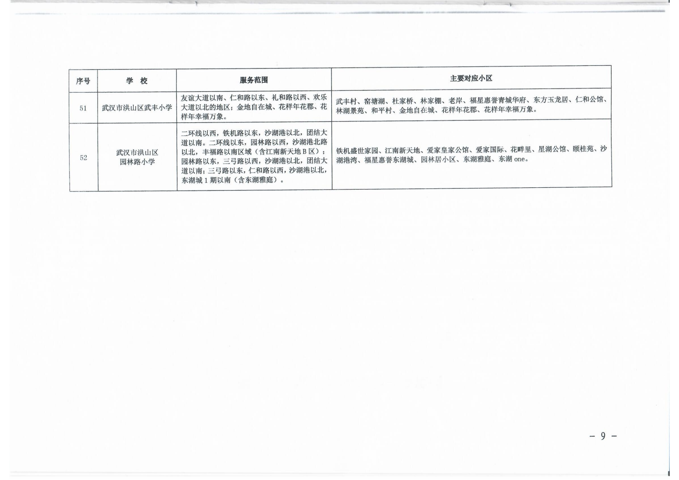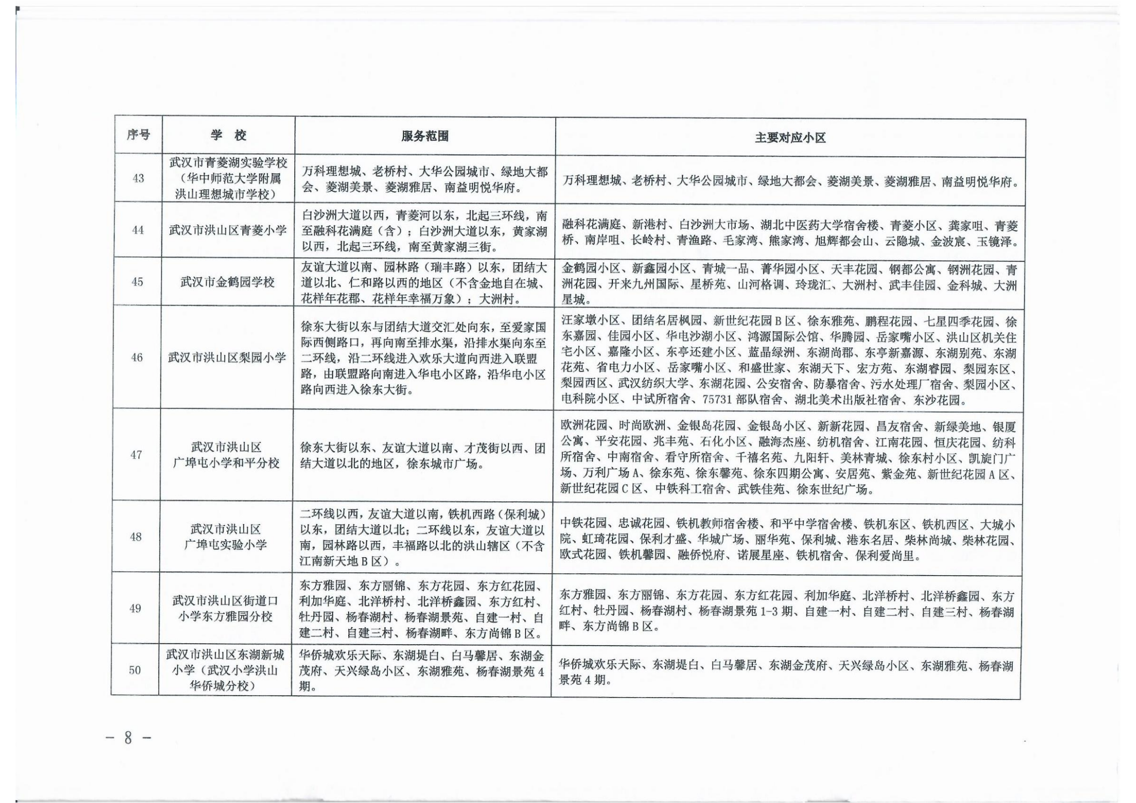 洪山区教育局关于划分义务教育阶段学校2025年服务范围的通知