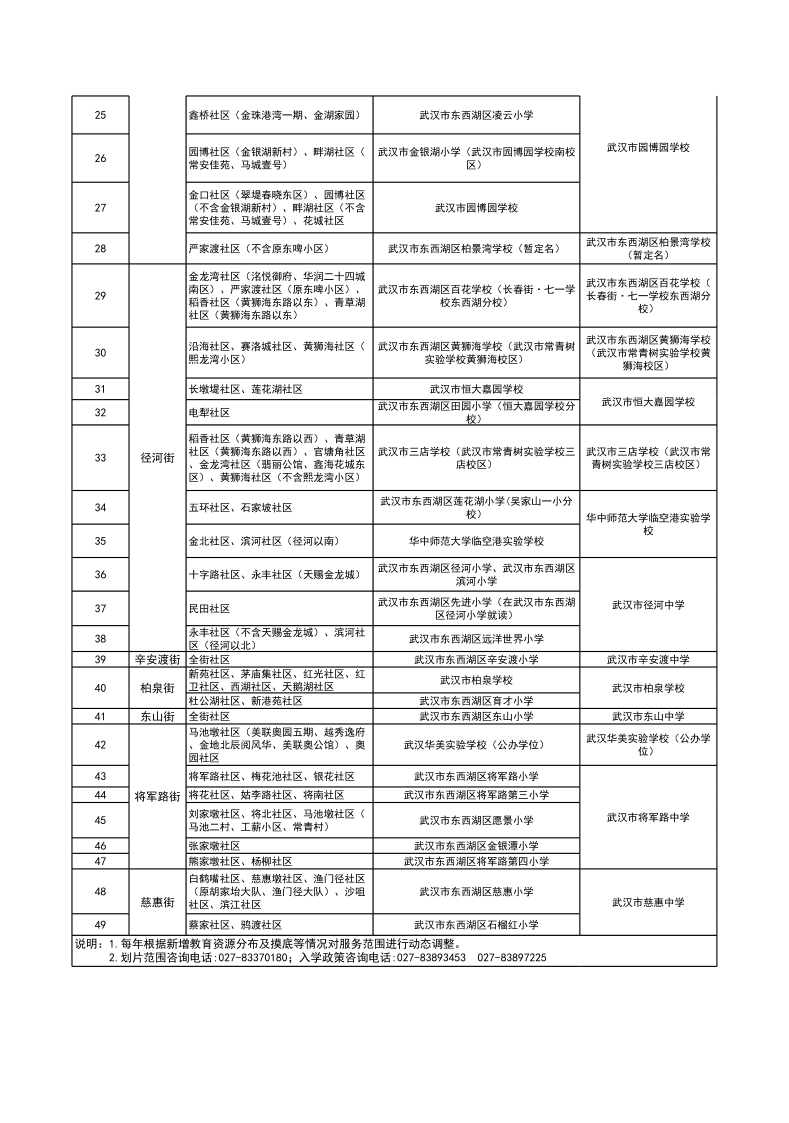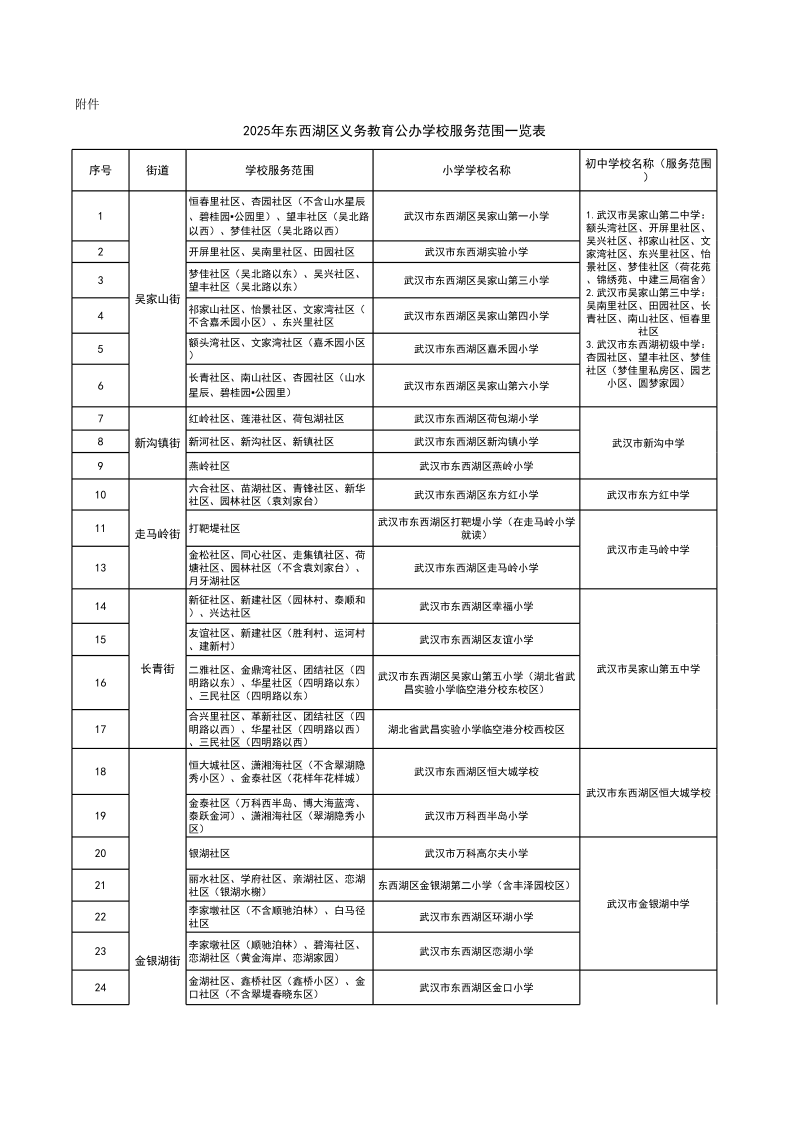附件:2025年东西湖区义务教育公办学校服务范围一览表