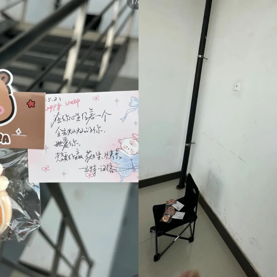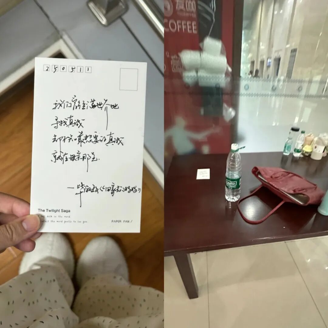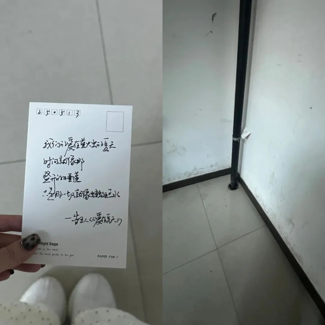 我把这份心意藏在学校的各个角落。除了大家常去的图书馆、教学楼,我还找了些特别的小角落:便利店、花丛里、茶馆,让信能“安全”待一会儿。每次放好纸条,我都会快速拍张照留念,然后悄悄离开,心里既期待又忐忑:会是谁第一个发现呢?