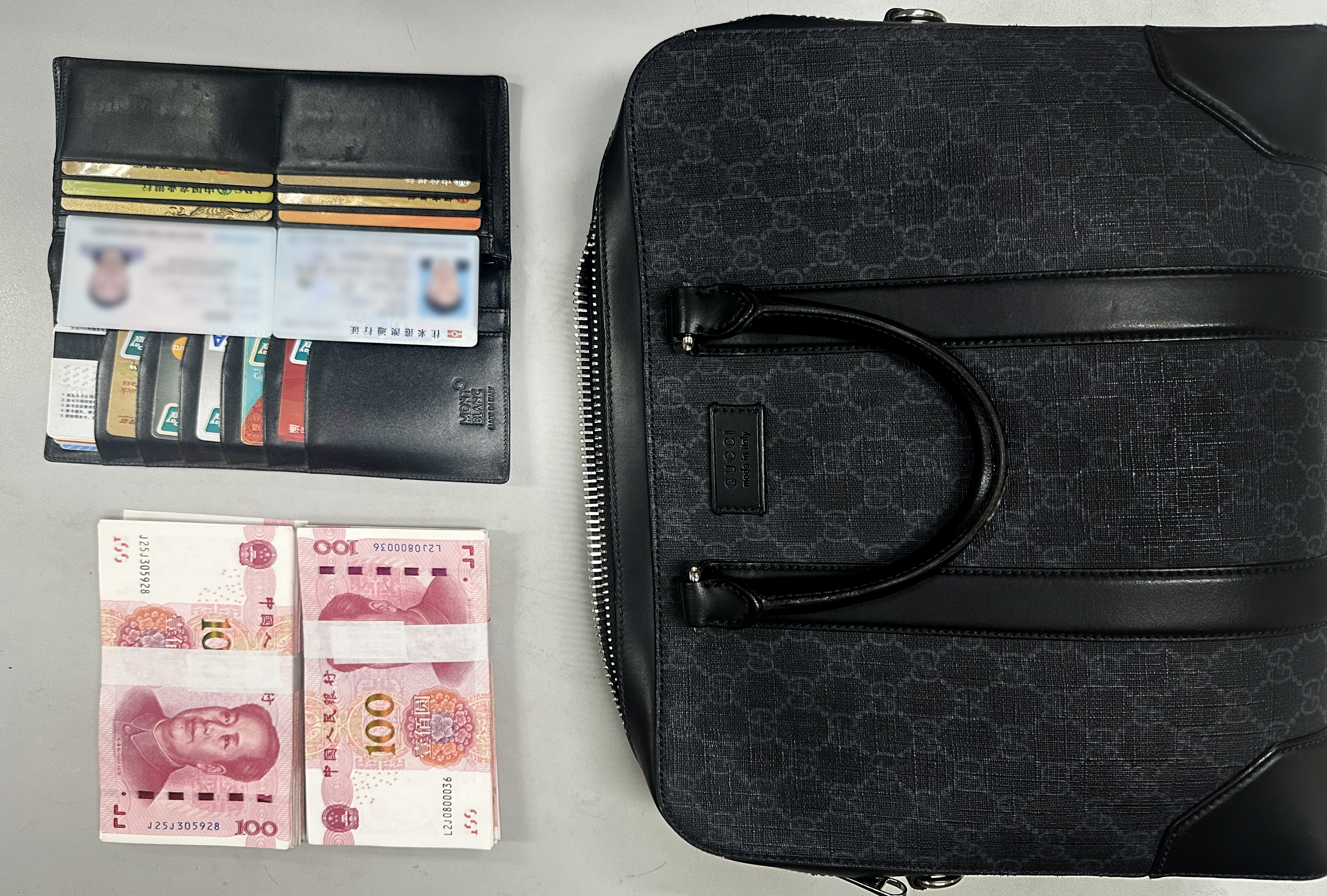 骆尧接过手提包感谢这名好心乘客,立刻把包送到车控室。值班站长李萌打开一看,两沓现金映入眼帘,整整2万元,包内还有钱包,里面身份证、港澳通行证、银行卡等重要证卡整齐排列。清点物品之后,李萌当即报告驻站民警,联动全线车站寻找失主。