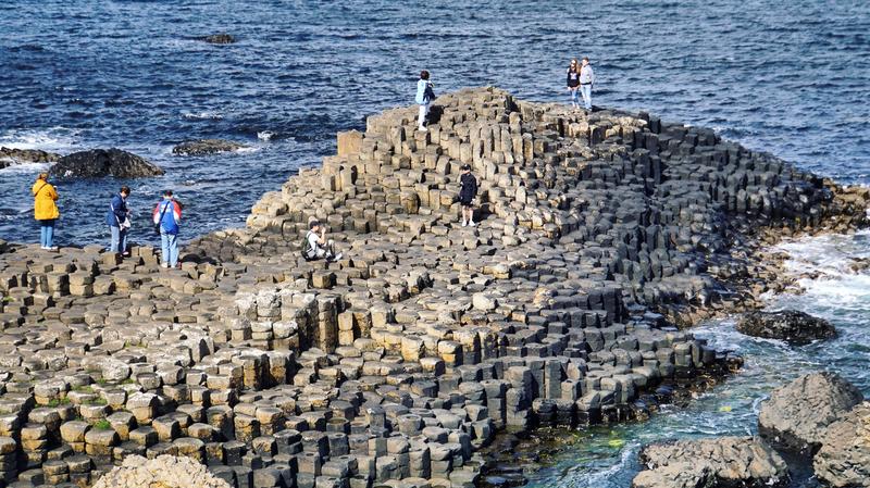 2017年6月15日,在英国北爱尔兰安特里姆郡,游客在“巨人之路”游览。新华社记者杜涓涓摄