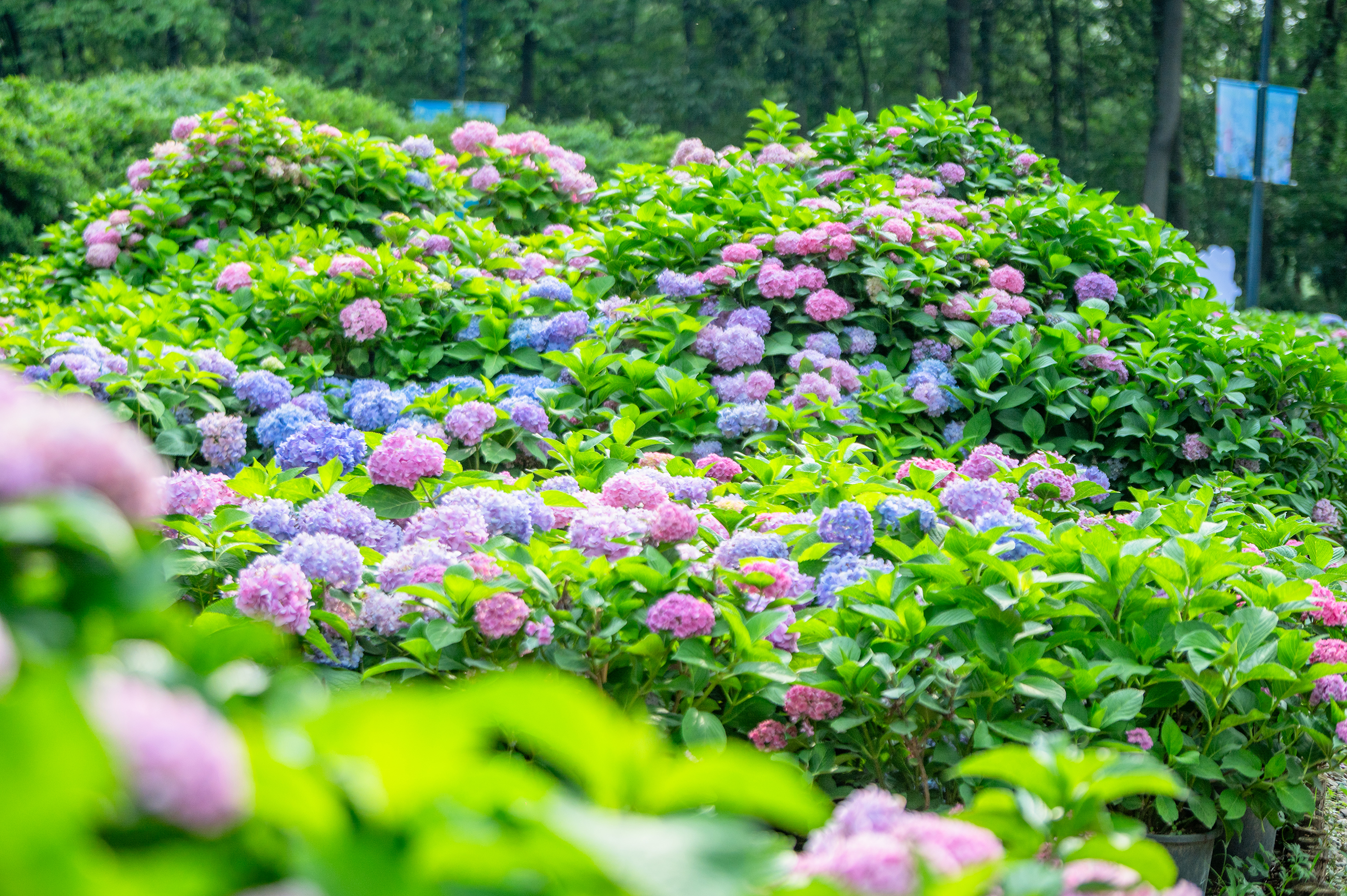武汉植物园绣球堆叠成小山坡。武汉植物园供图
