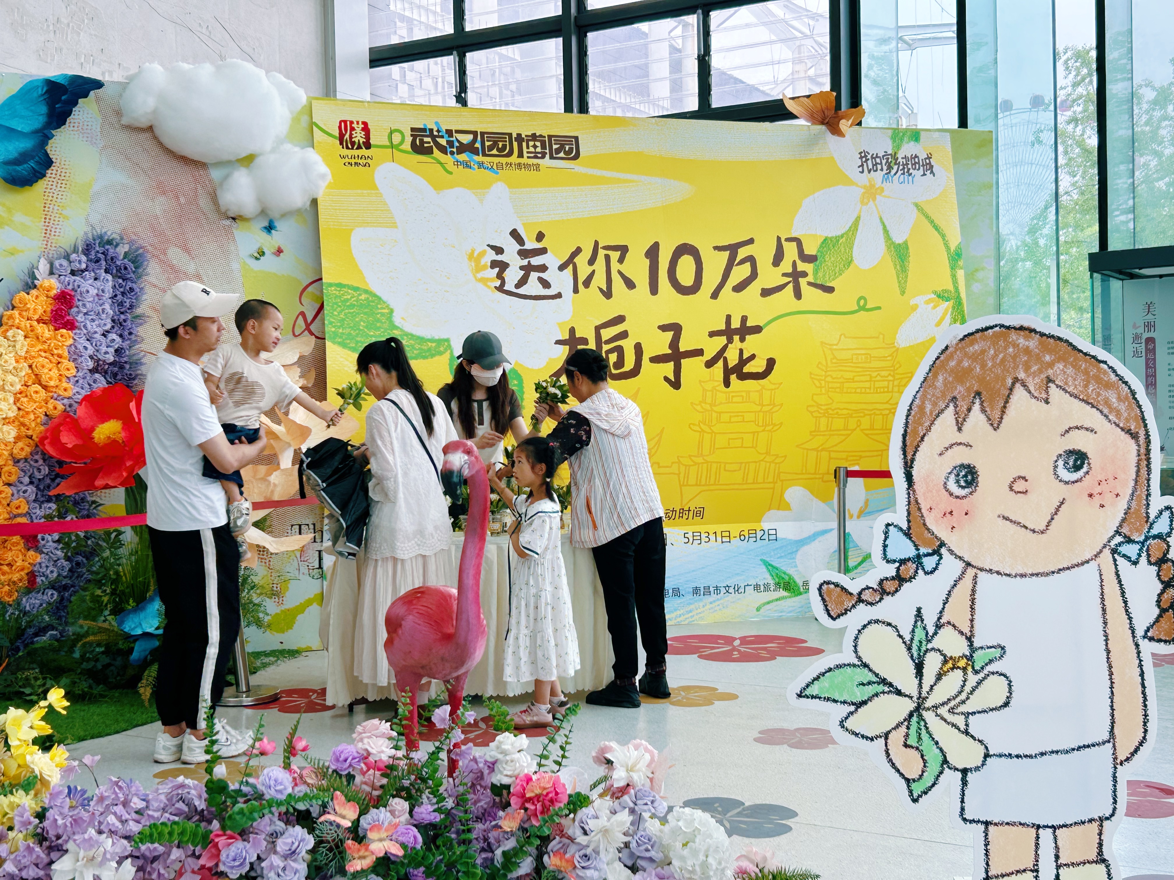 在武汉园博园,“送你十万朵栀子花”活动浪漫开启,市民游客能在自然博物馆众乐苑、长江文明馆序厅内免费领花。5月31日中午11时,左先生一家三口领到了香喷喷的栀子花。左先生满脸带笑地说,“出门遛个娃,还能感受到武汉的夏日诗意,真是处处有惊喜。”细心的左先生在走进大厅时,还专门用随身携带的塑料袋,将淋湿的雨伞包起来,以免水滴溅到地上。虽然领花处人流不断,但地面始终保持整洁。