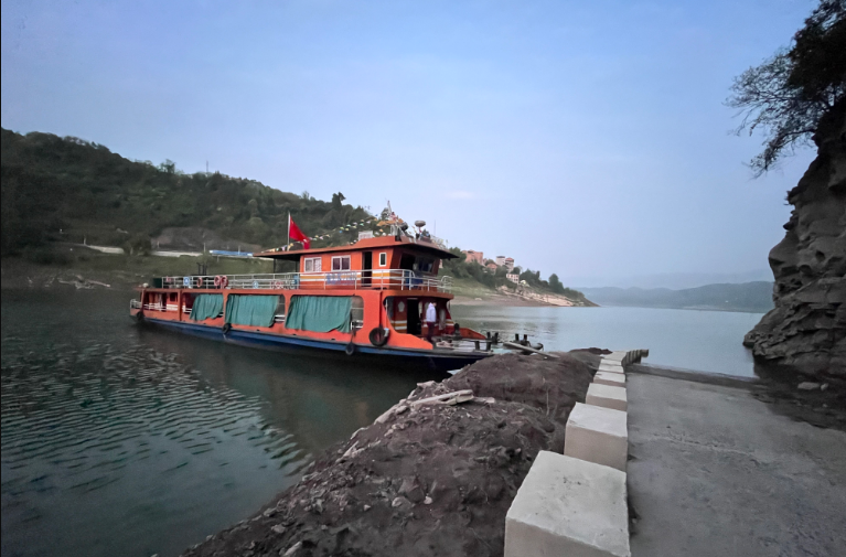 渡船满载村民的希望驶向彼岸。