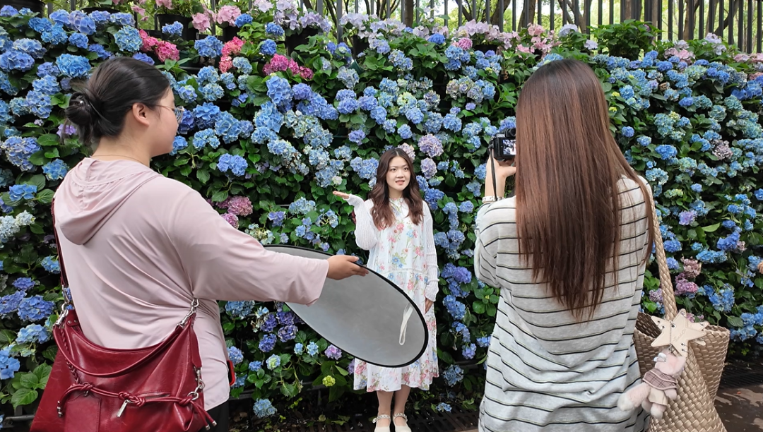 这个初夏,一场绣球花节,吸引了30多万人次前往运河公园打卡。如何在“朋友圈摄影大赛”中一鸣惊人?旅拍定制师总能给出亮眼的“方案”。在一个多月时间里,00后旅拍摄影师覃雪桐忙得脚不沾地,最高峰时一天能接7、8单。