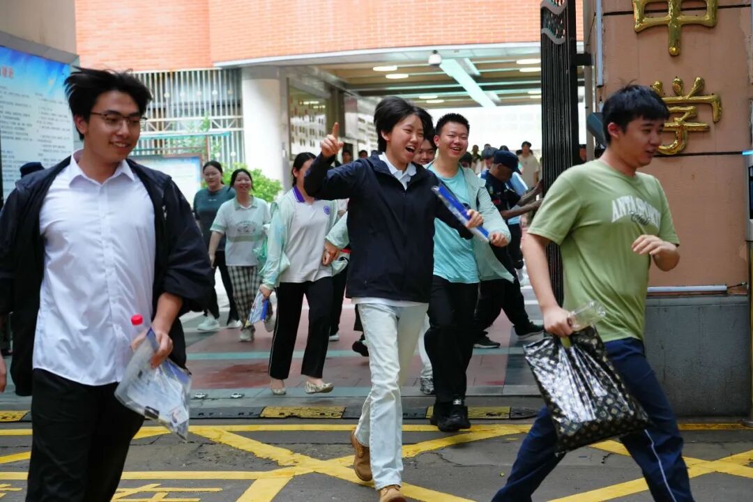 2025年高考于今天下午收官,考生们微笑快步走出考场,摄于武汉二中。