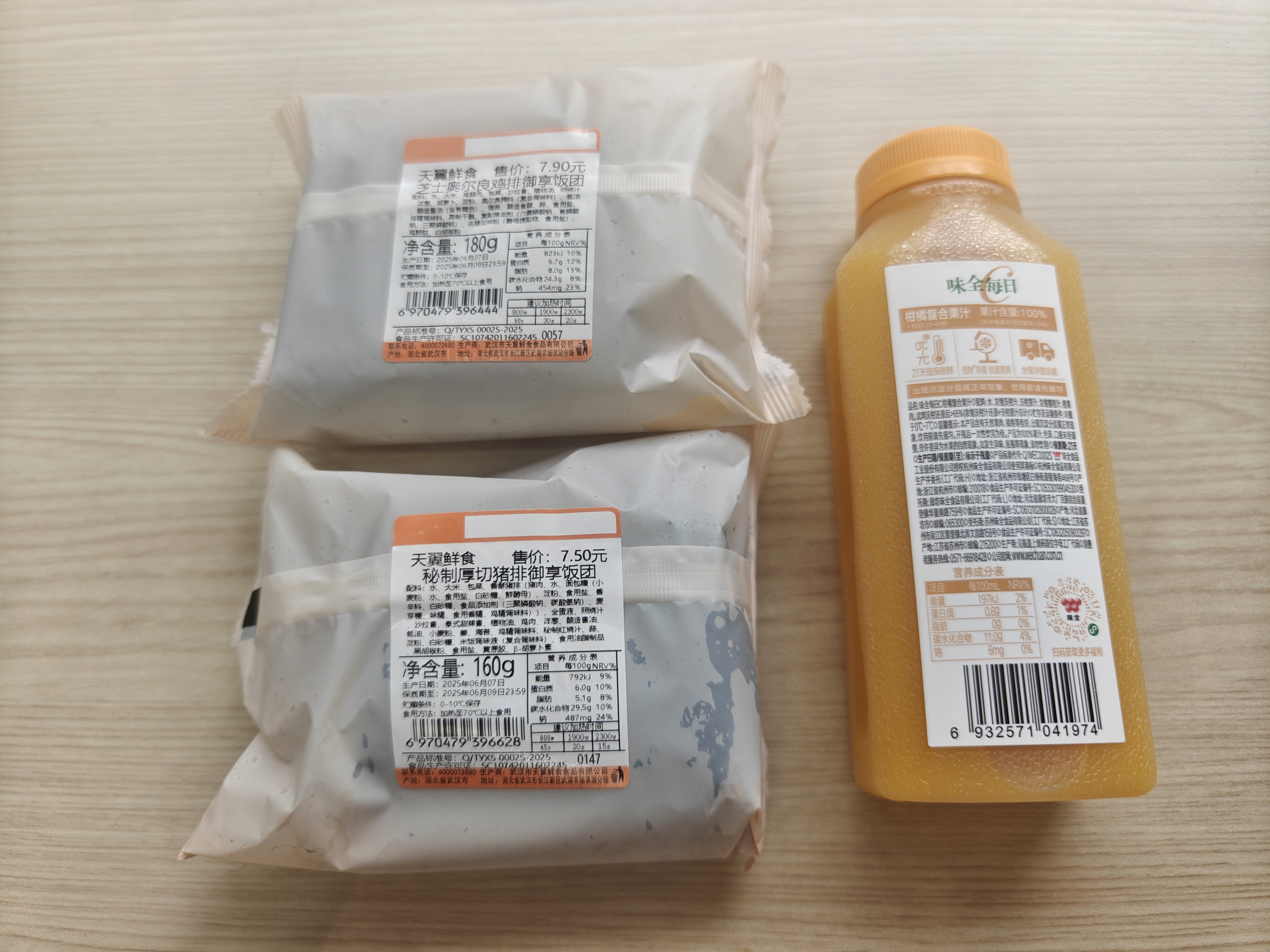 6月9日下午购得的盲盒中,两个饭团当天23时59分过期。受访者供图