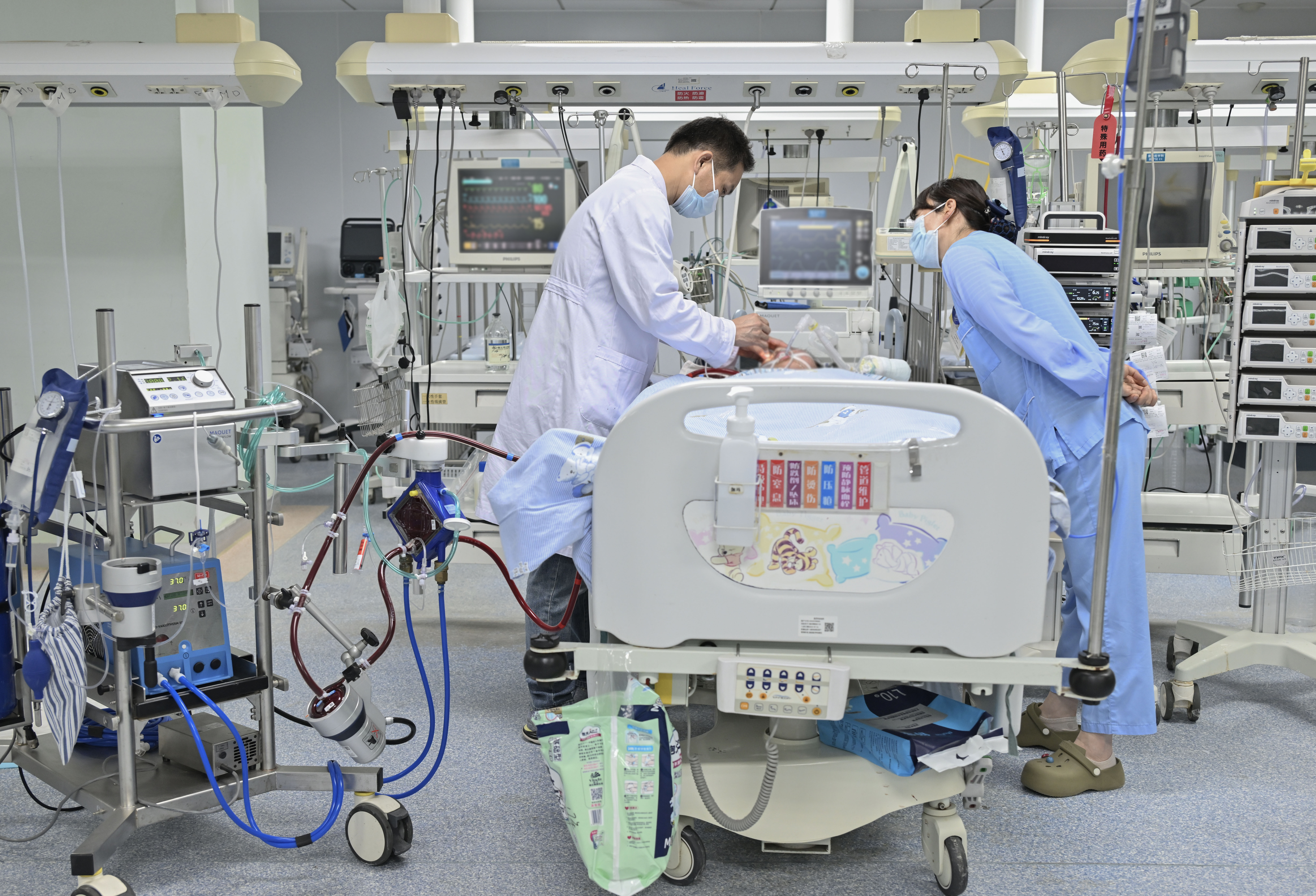 ECMO运转期间,医护人员监测患儿情况。通讯员张祖国 摄