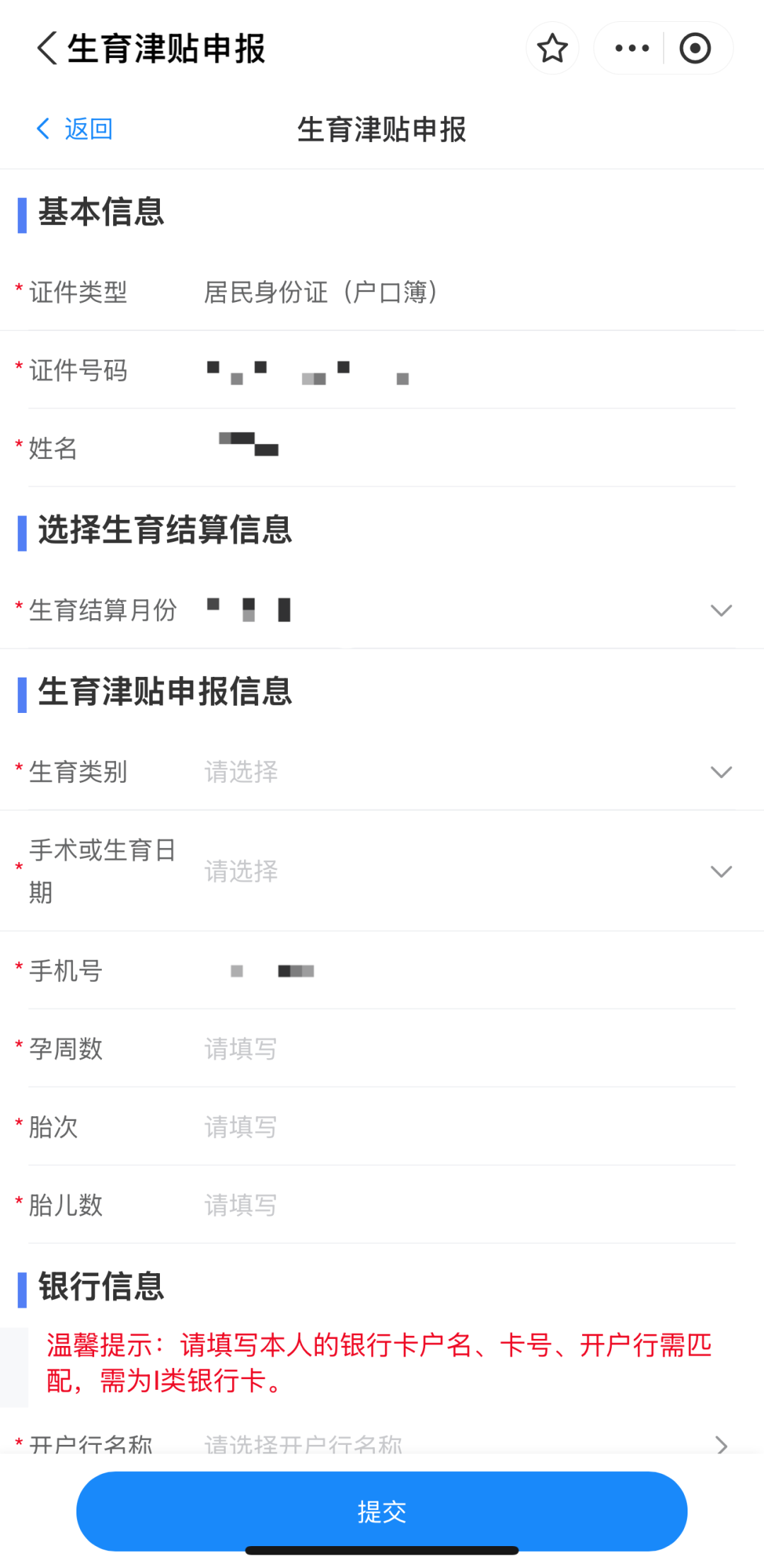 ⑥自行填写生育结算信息,上传有关资料信息,提交申请。