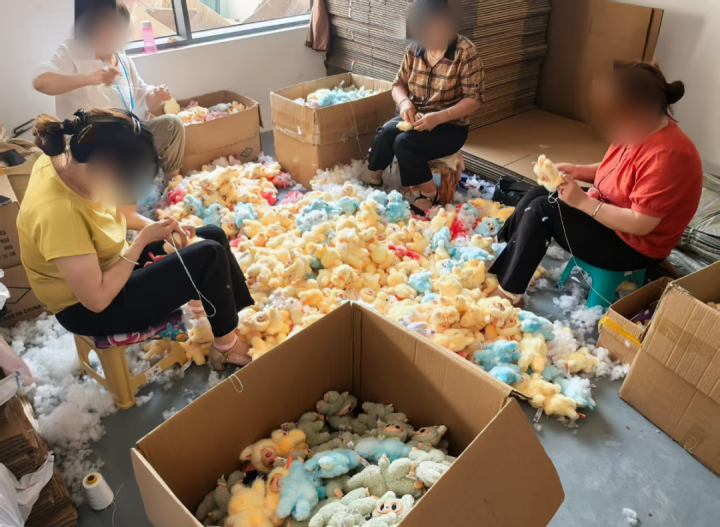近期,浙江东阳市市场监管局白云所接连查处3起制售假冒“拉布布”案件,共查扣标有“POP MART”注册商标的拉布布玩偶成品1.8万个,半成品5000余个,相关配件4000余个。