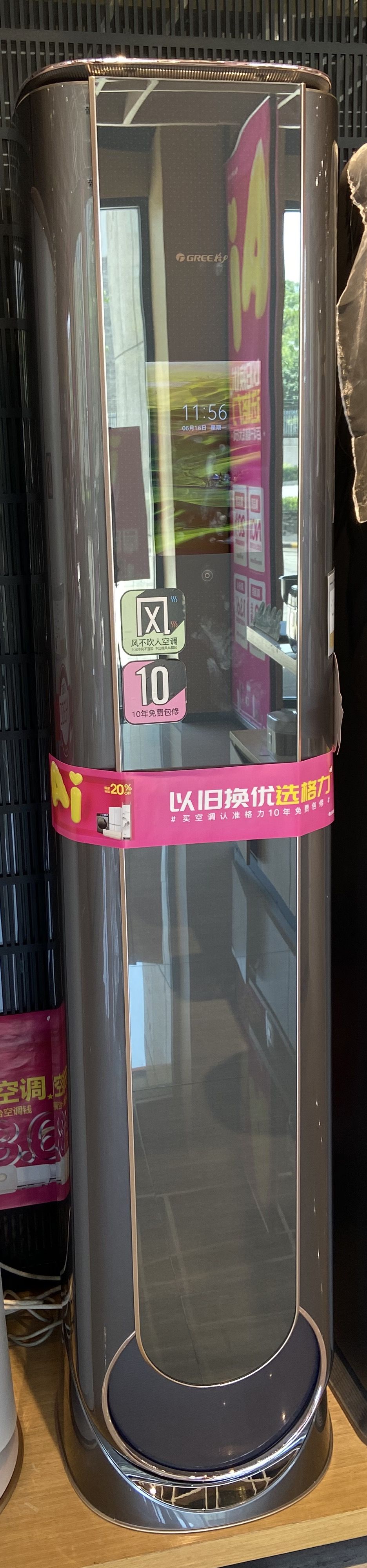 格力电器(武汉)有限公司等联合申报的“空调柜机”专利荣获外观设计专利金奖。图为获奖的实体空调外观。