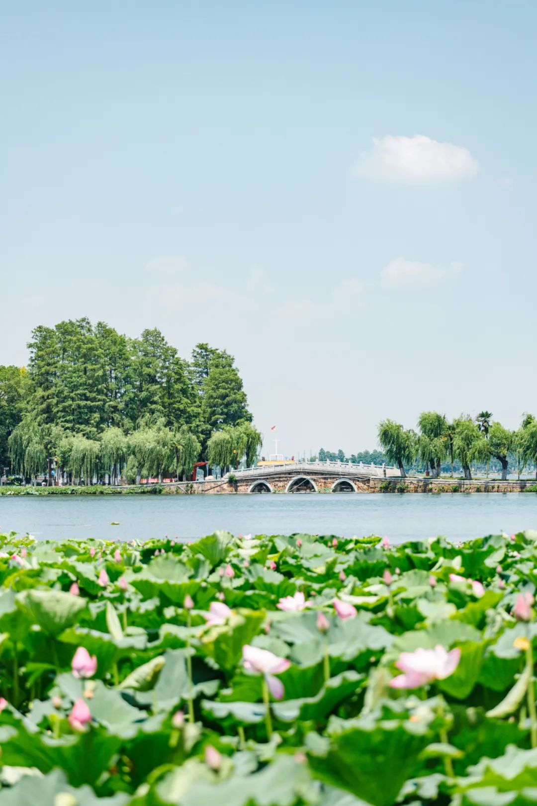 东湖畔荷花绽放,诗意唯美。