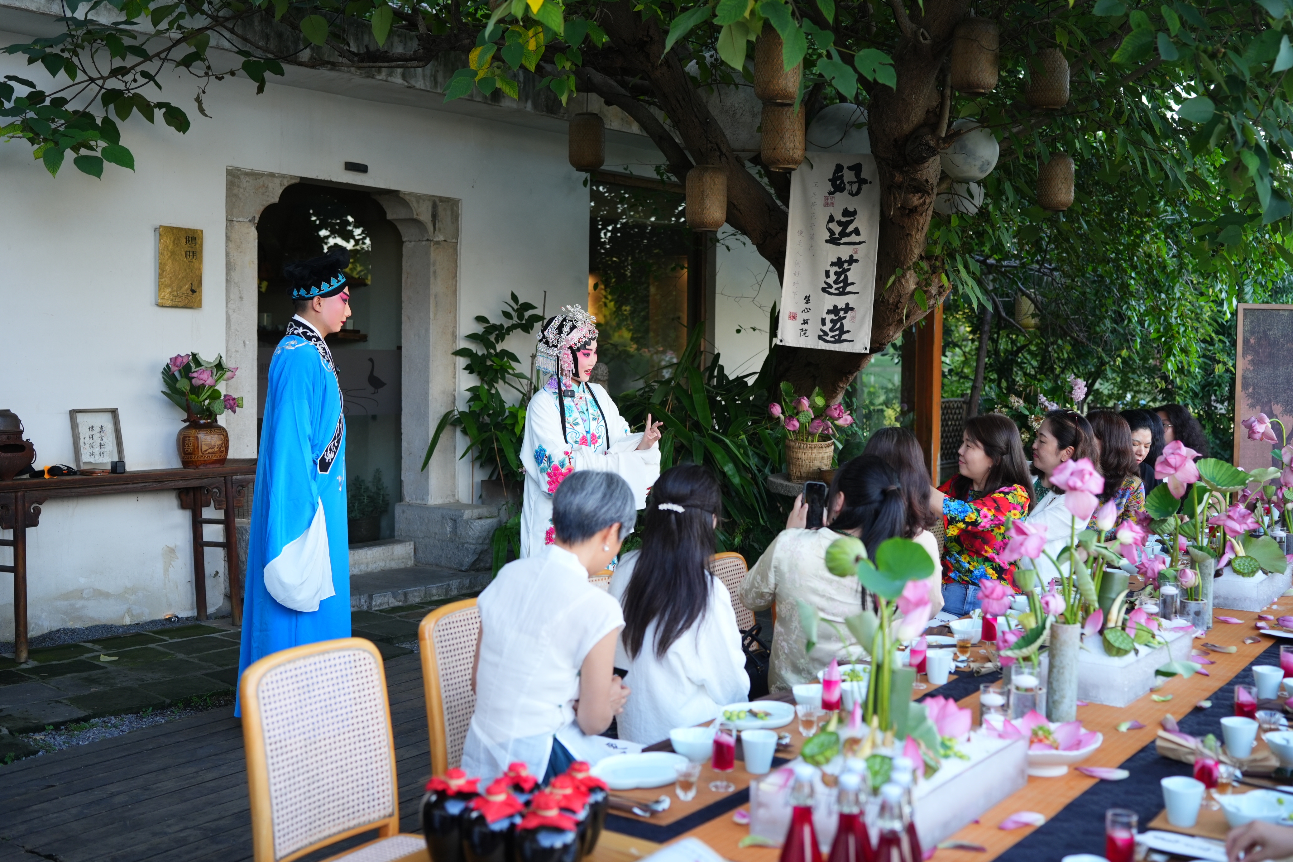 其间,戏曲演员身着华服登场,于荷香中演绎《贵妃醉酒》《梨花颂》等京剧名曲,为食客打造更有韵味、更为丰富的就餐体验。