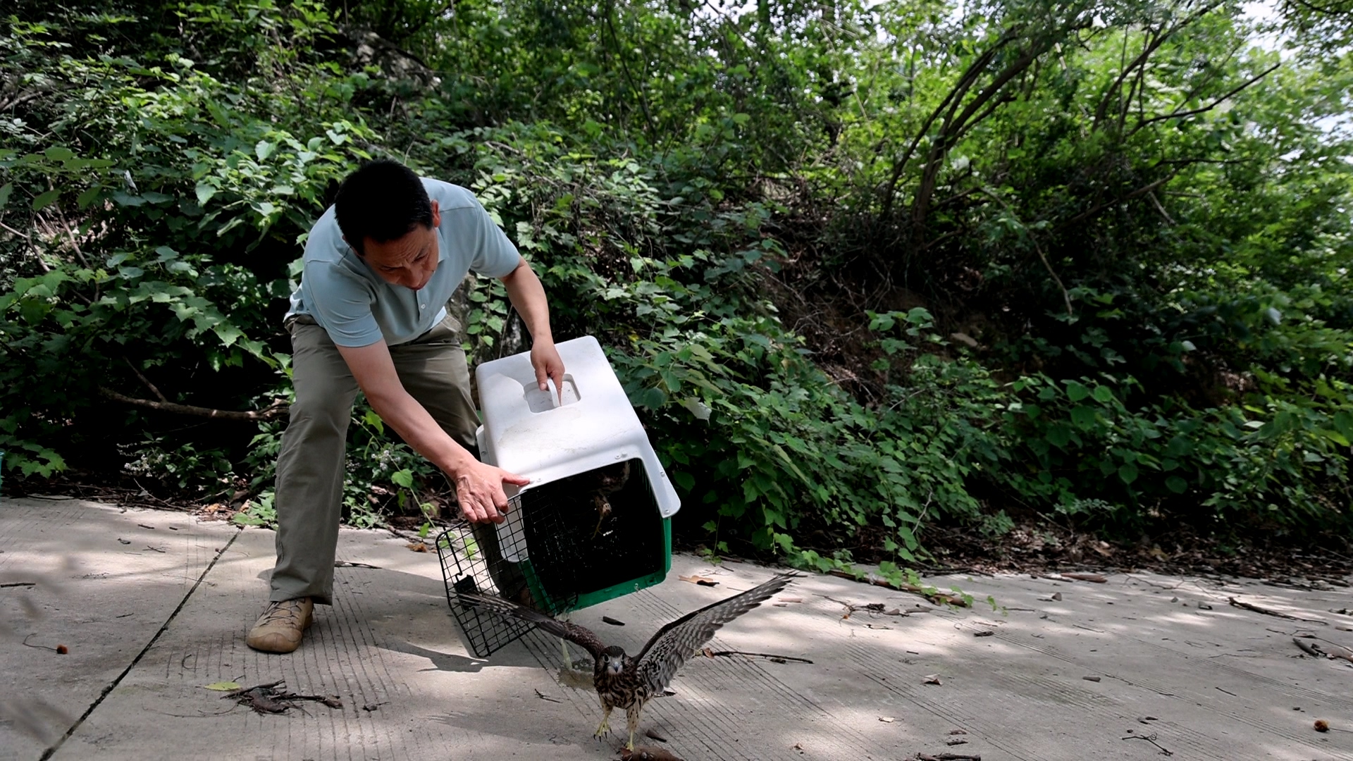 武汉动物园工作人员放归凤头鹰。肖开顺摄