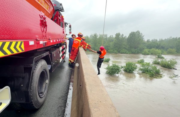 6月20日,连续强降雨导致湖北省广水市杨寨镇刘畈村河水暴涨。该村一位村民被困在河中央小岛上,亟待救援。广水市消防救援大队十里消防站和广办消防站迅速组织力量赶赴现场救援该村民。