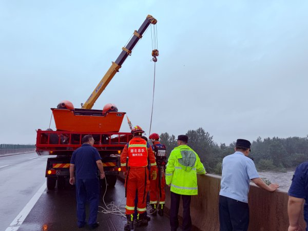 “准备,拉!” 随着一声令下,吊臂车缓缓启动,将被困男子慢慢地提拉至桥面上,让其成功脱离险境。