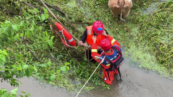 该男子姓吴,他说,当天12时左右,他来河边放牛。因持续降雨,导致河水暴涨,他站立的地方很快就变成河中央孤岛。有部分牛被湍急的河水冲到下游去了,他和剩余的四头牛被困在孤岛上。他也尝试过自行脱困,但汹涌的河水让他望而却步,他就报警求助。