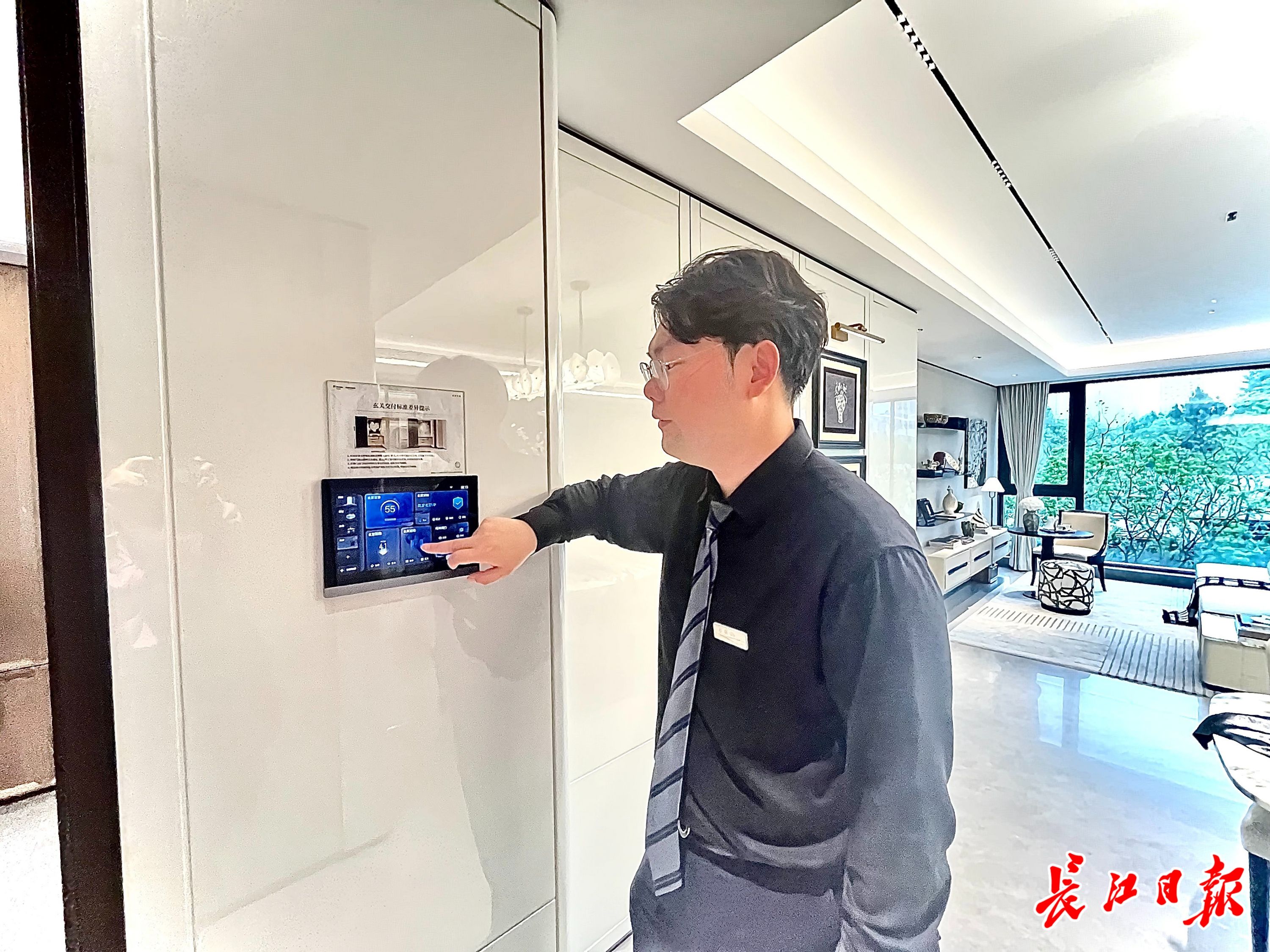 工作人员给记者现场演示如何智慧屏控制全屋灯光。记者冷靖华摄